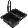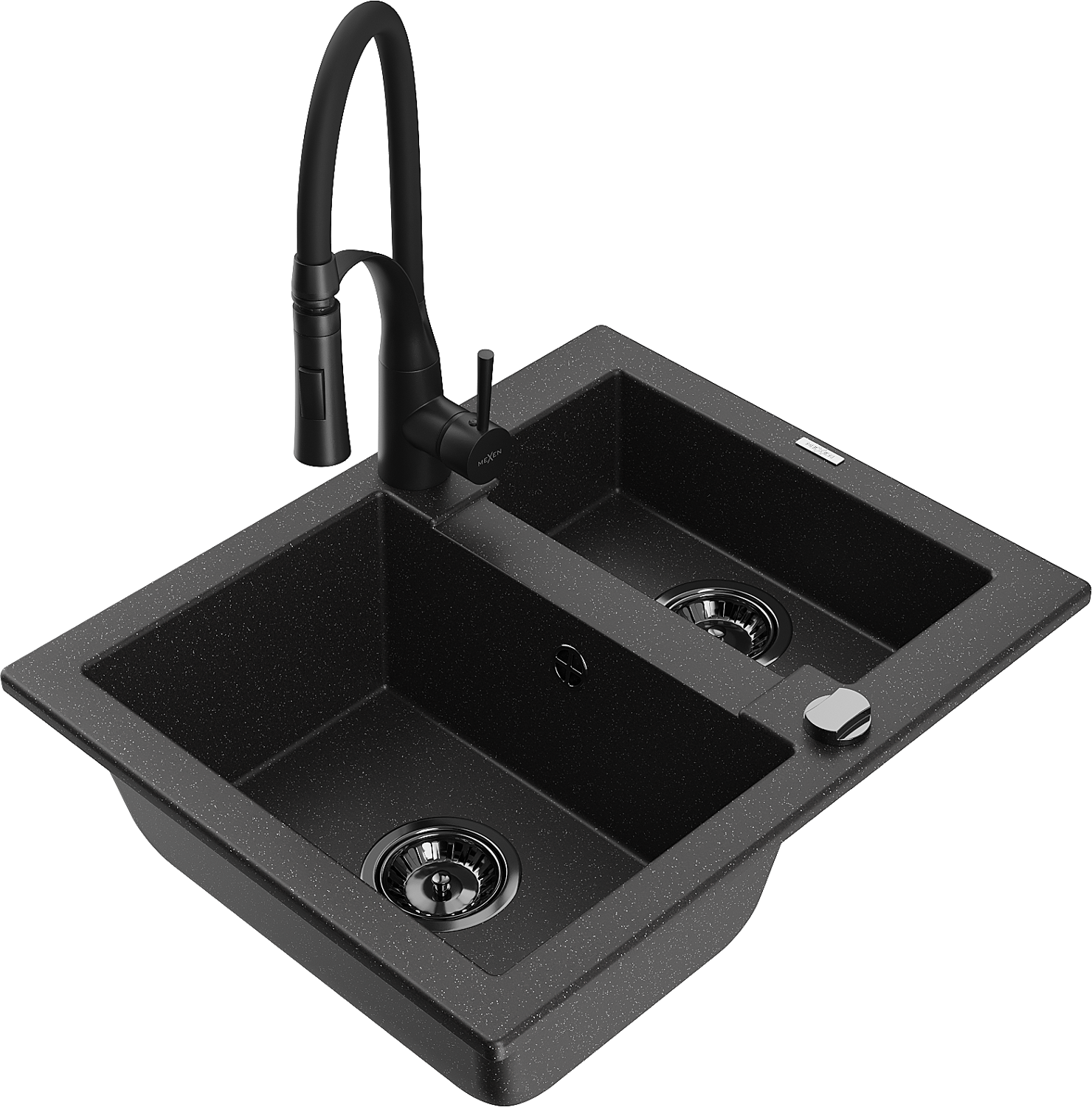 Mexen Carlos chiuvetă granit 1,5 compartiment cu baterie bucătărie Aster, negru/argintiu metalic - 6518-73-73450-70-B