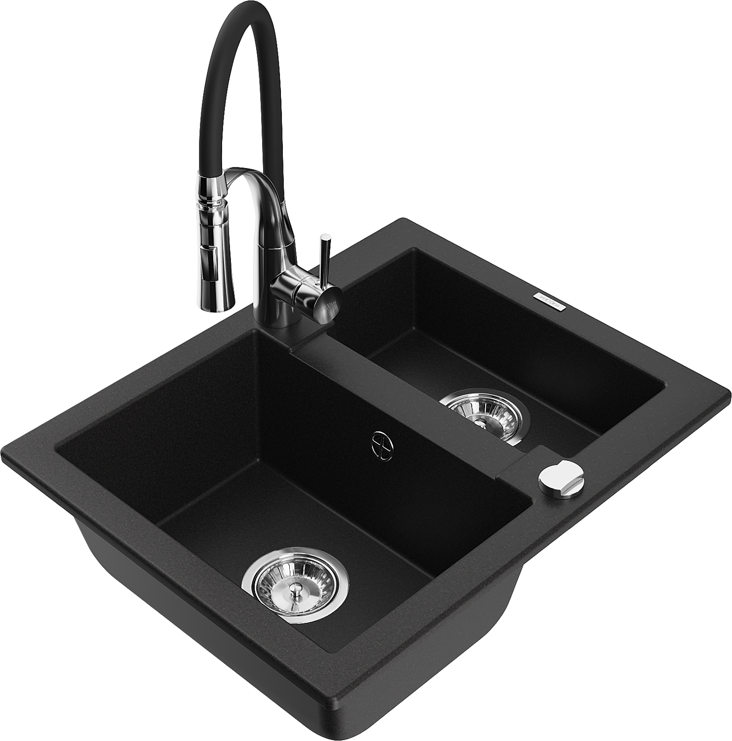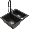 Mexen Carlos chiuvetă de bucătărie din granit cu 1,5 compartimente și robinet Aster, negru - 6518-77-73450-07