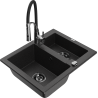 Mexen Carlos chiuvetă de bucătărie din granit cu 1,5 cuve și robinet Aster, negru - 6518-77-73450-07-B