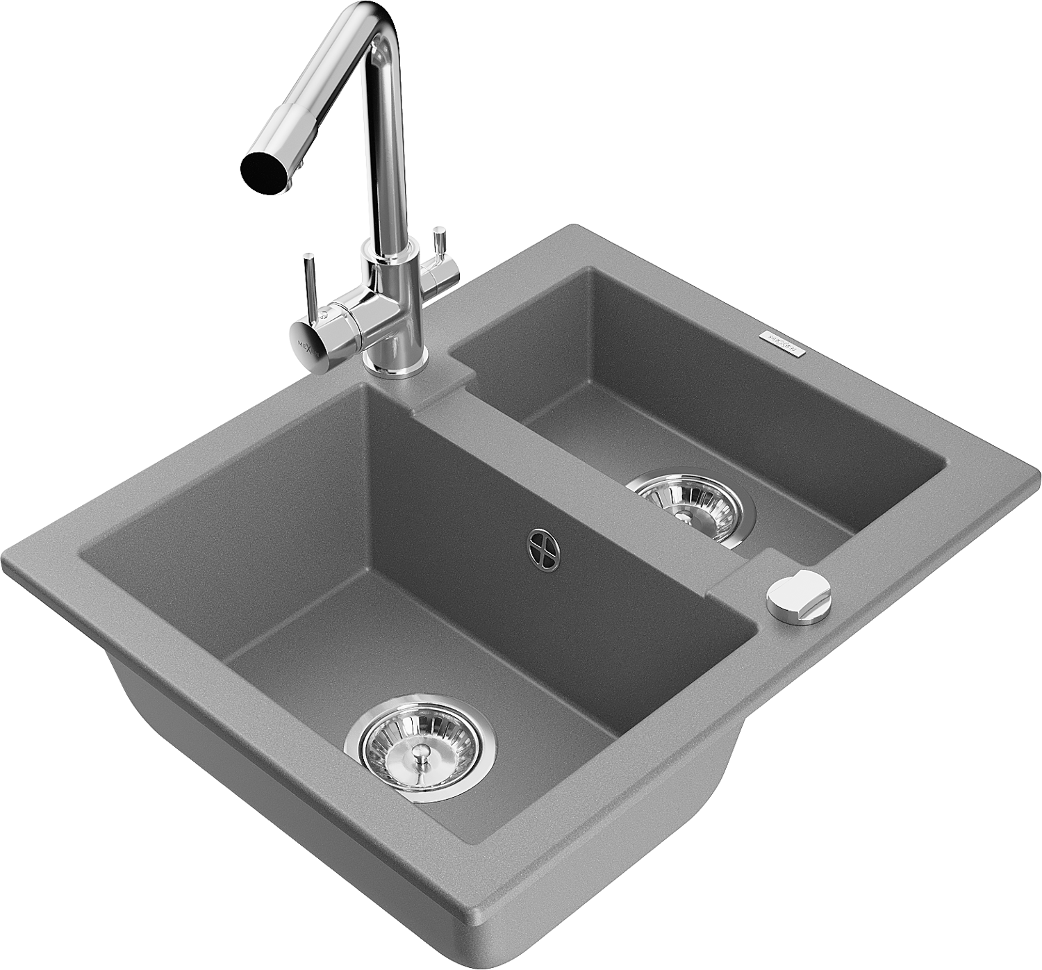 Mexen Carlos chiuvetă granit 1,5-camera cu baterie de bucătărie Duero, gri - 6518-71-671600-00