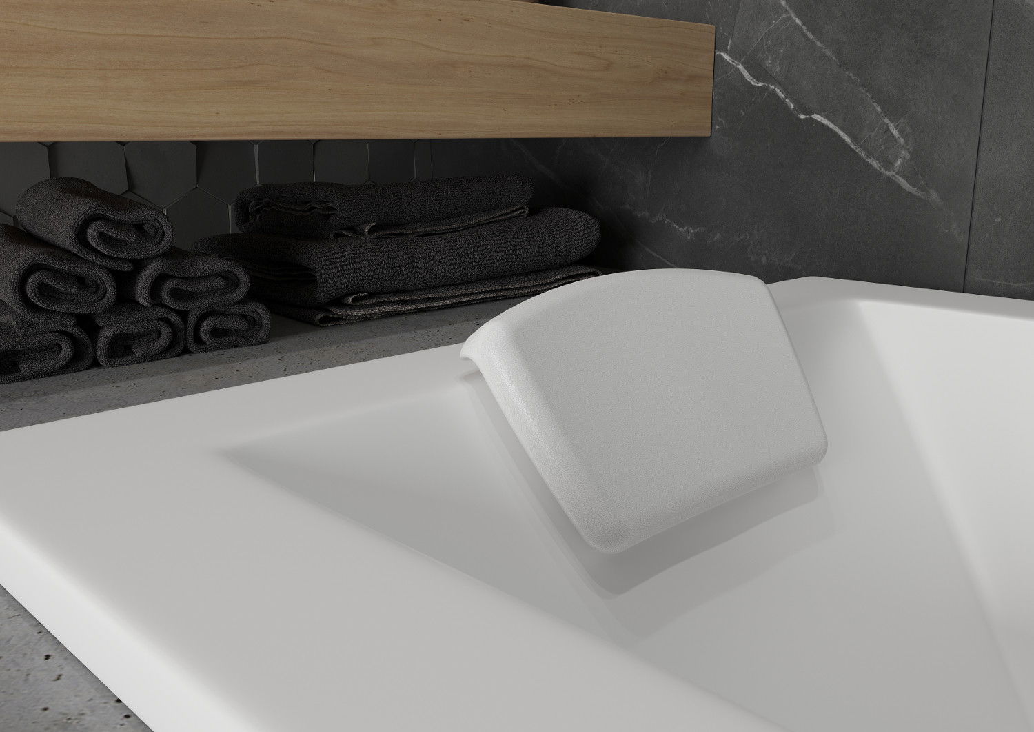 Tetiera este atașată cu o cană de aspirație, fără a deteriora astfel suprafața cazii. Ansamblul non -invaziv permite o schimbare rapidă și convenabilă a poziției tetierelor, în funcție de nevoile utilizatorului, asigurând un confort ridicat al băii.