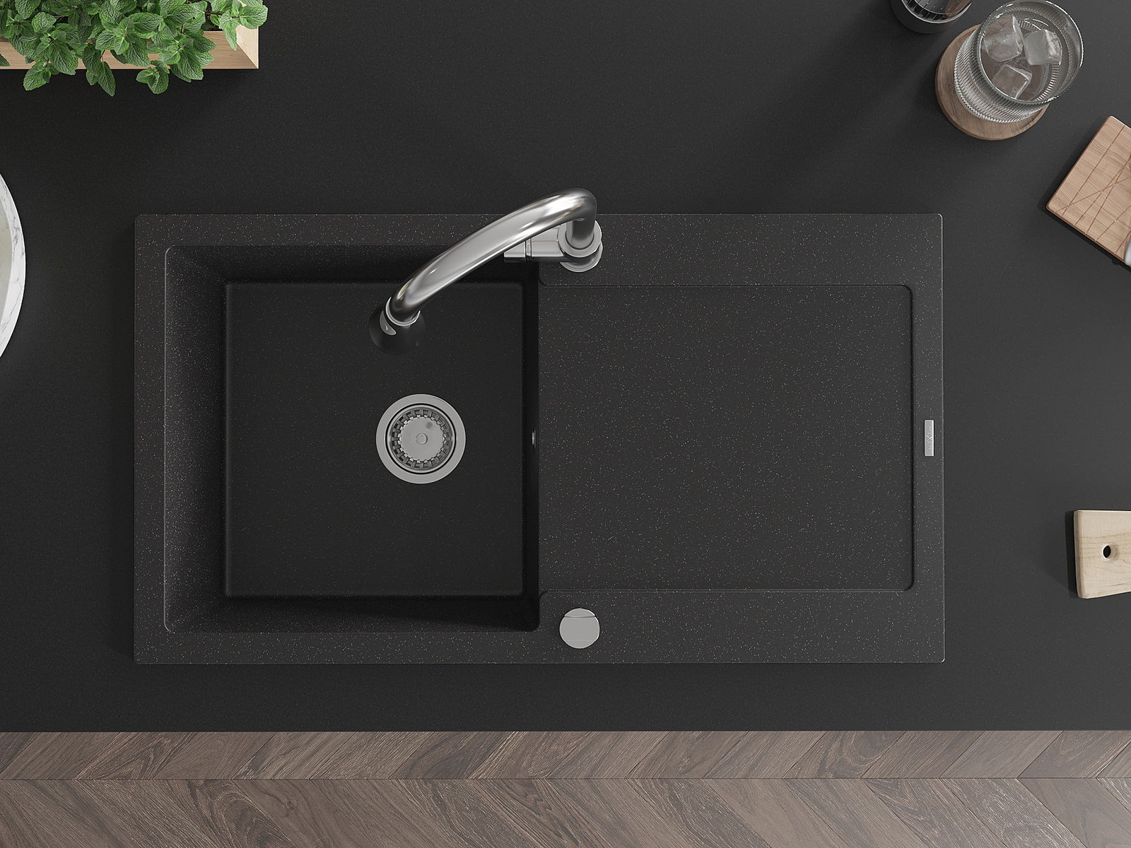 Datorită sistemului de montare universală, chiuveta este reversibilă, iar scurgerea poate fi montată pe blat la stânga sau la dreapta. În acest fel, puteți ajusta cu ușurință pagina la nevoile și condițiile dvs.