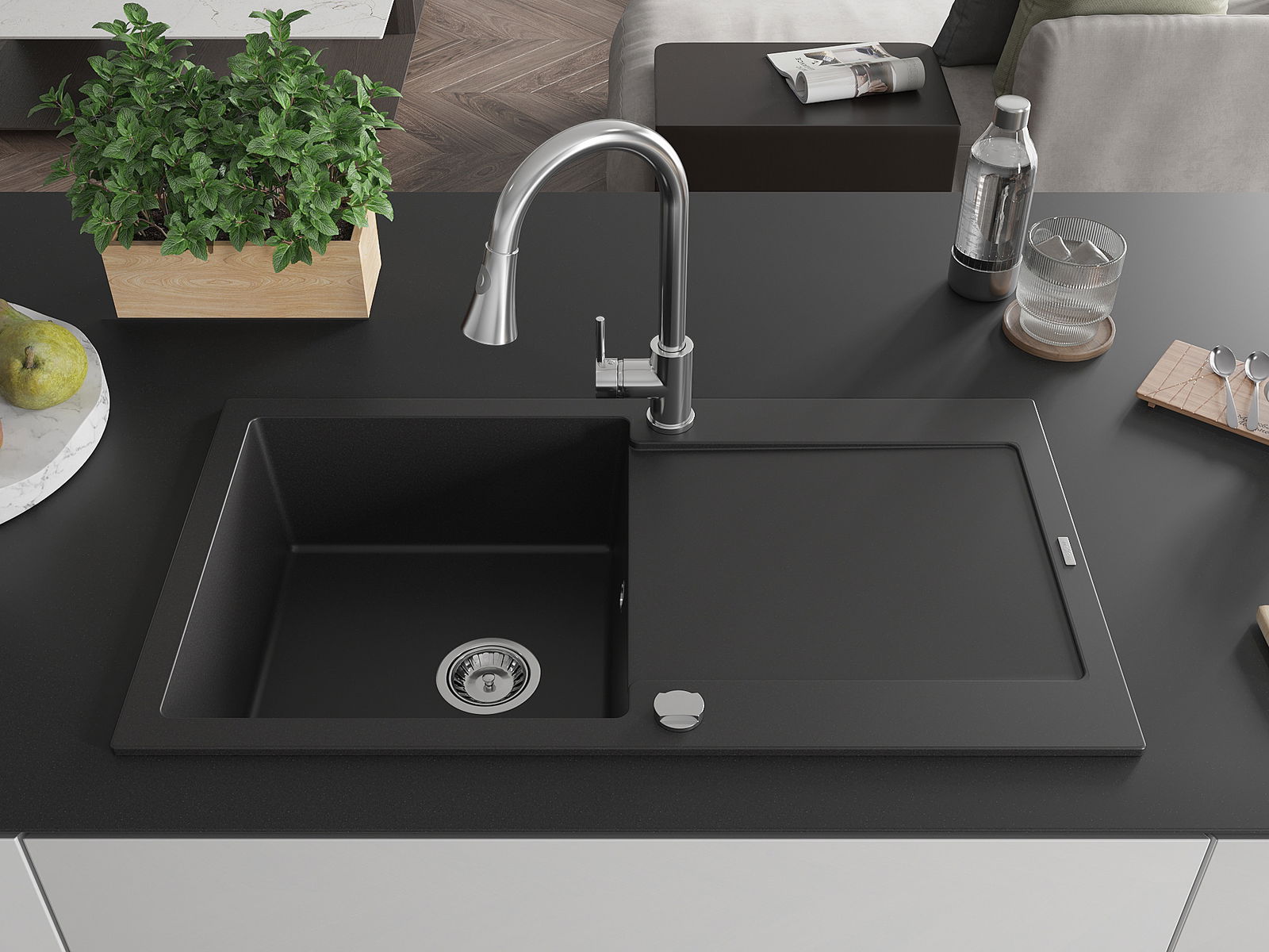 Chiuveta a fost realizată din granit de înaltă calitate. Reprezintă un complement elegant și, mai presus de toate, practic pentru orice bucătărie, indiferent de stilul acesteia. Calitatea înaltă și durabilitatea granitului asigură o utilizare de lungă durată.
