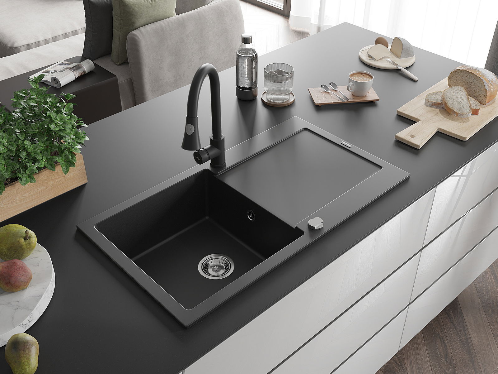 Suprafața chiuvetei este rezistentă la pete și decolorarea, datorită căreia este ușor de curățat și își păstrează culoarea mult timp. Estetică și practic completarea fiecărei bucătării.