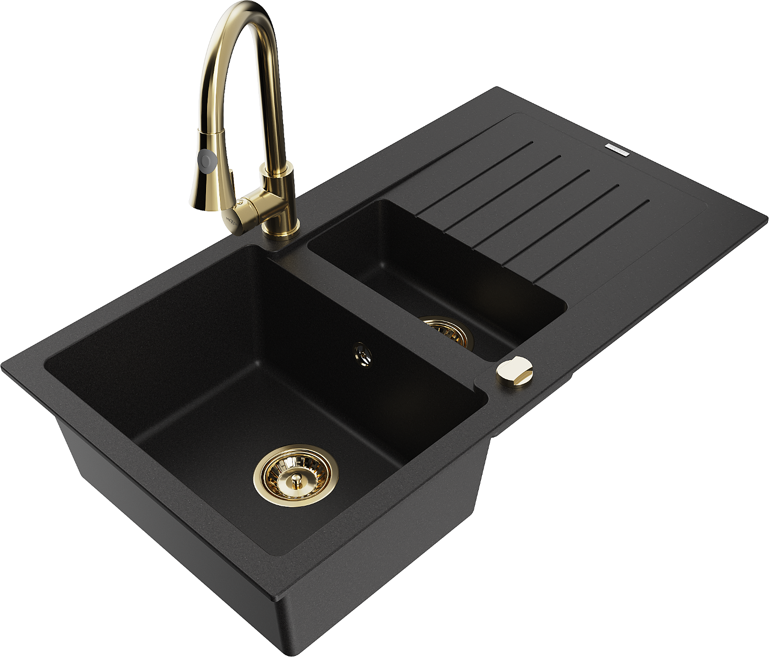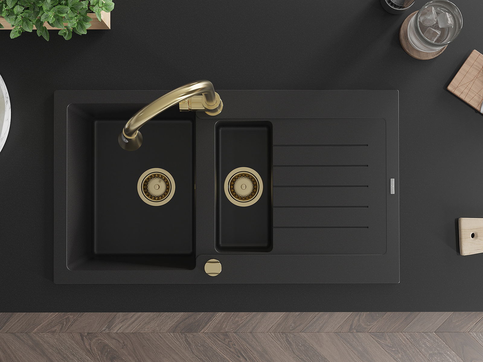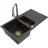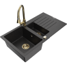 Mexen Matias chiuvetă din granit cu 1,5 compartimente, cu scurgător și baterie de bucătărie Elia, negru - 6502-77-670101-50