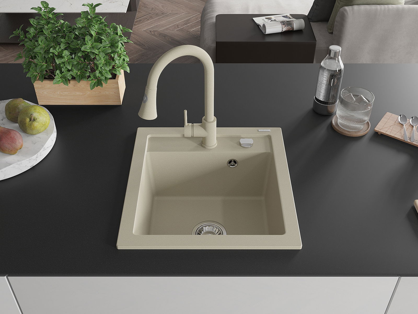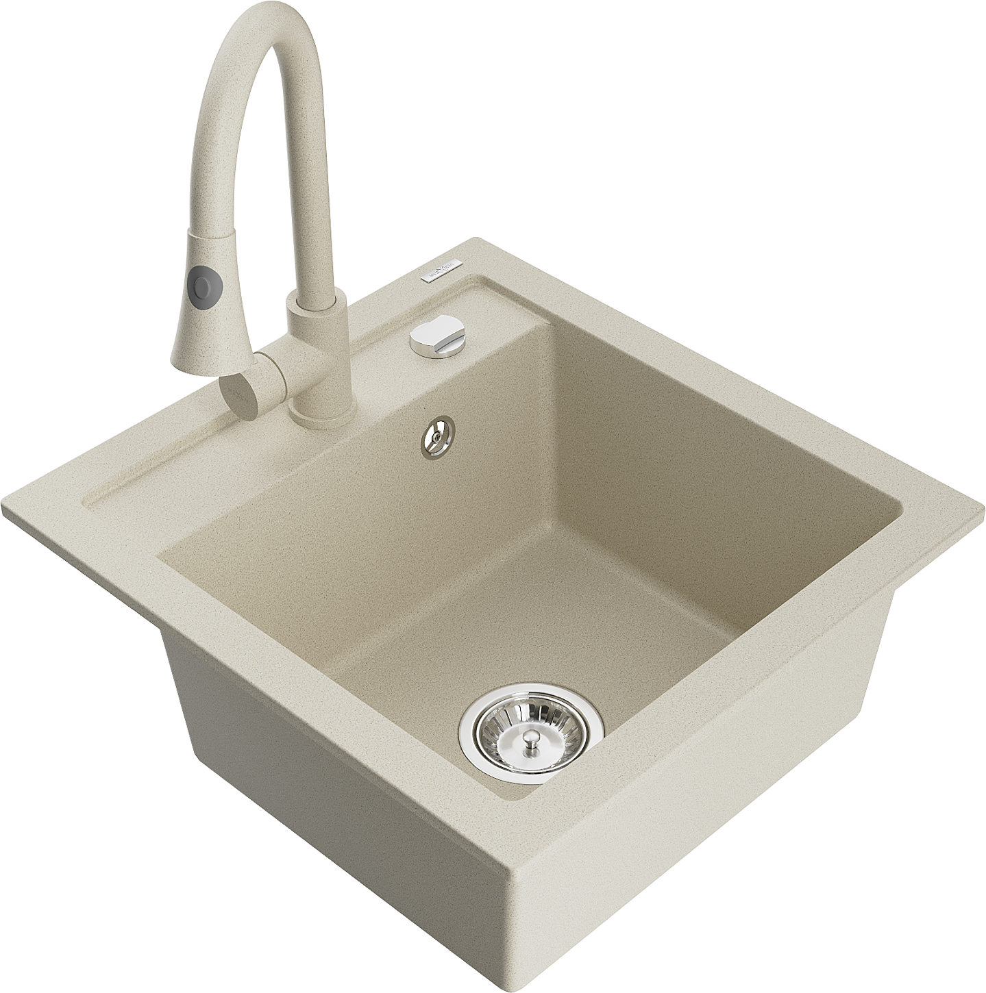 Mexen Vito chiuvetă de bucătărie din granit cu 1 compartiment și baterie de bucătărie Elia, bej - 6503-69-670101-69