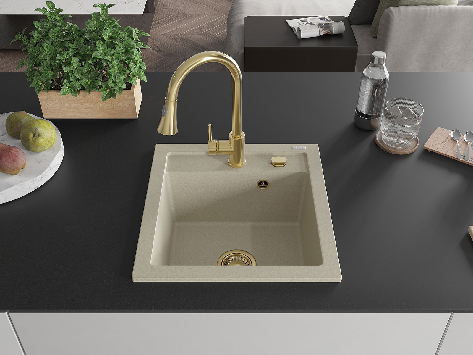 Suprafața chiuvetei este rezistentă la pete și decolorarea, datorită căreia este ușor de curățat și își păstrează culoarea mult timp. Estetică și practic completarea fiecărei bucătării.