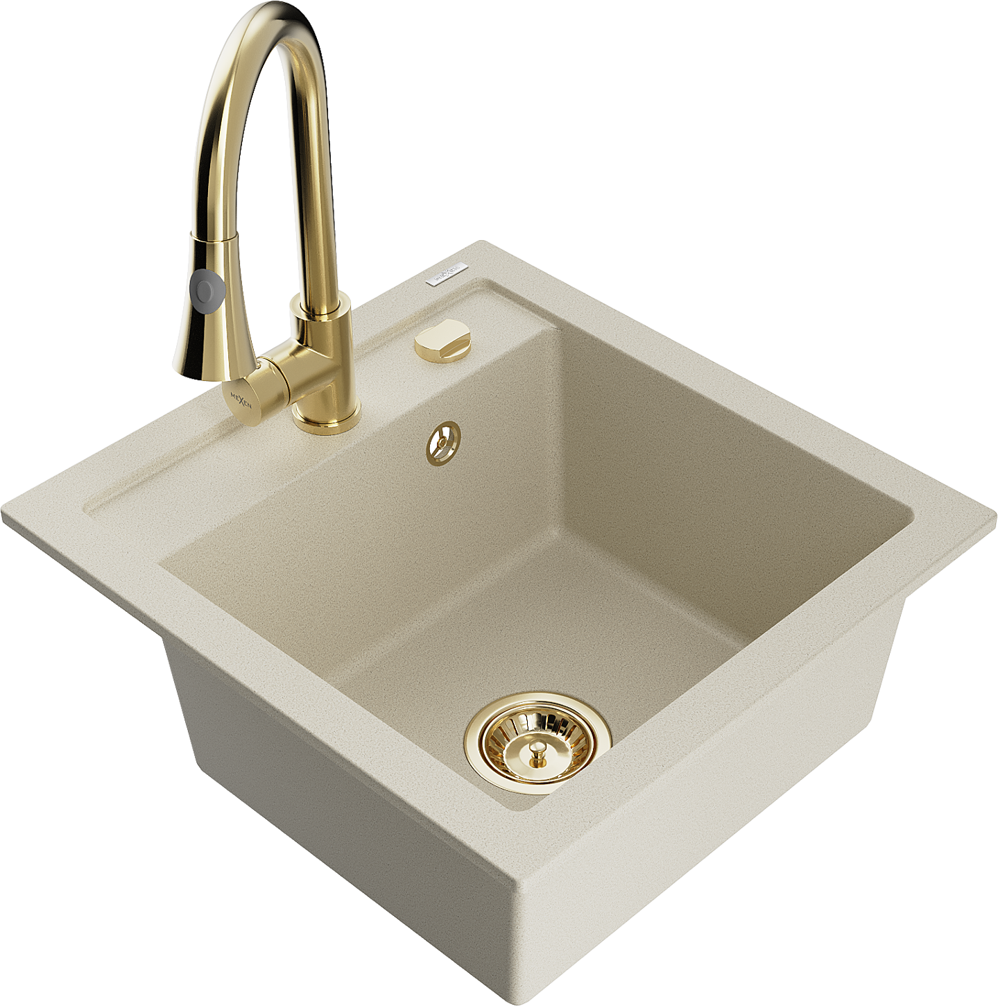 Mexen Vito chiuvetă de bucătărie din granit cu 1 compartiment și baterie de bucătărie Elia, bej - 6503-69-670101-50
