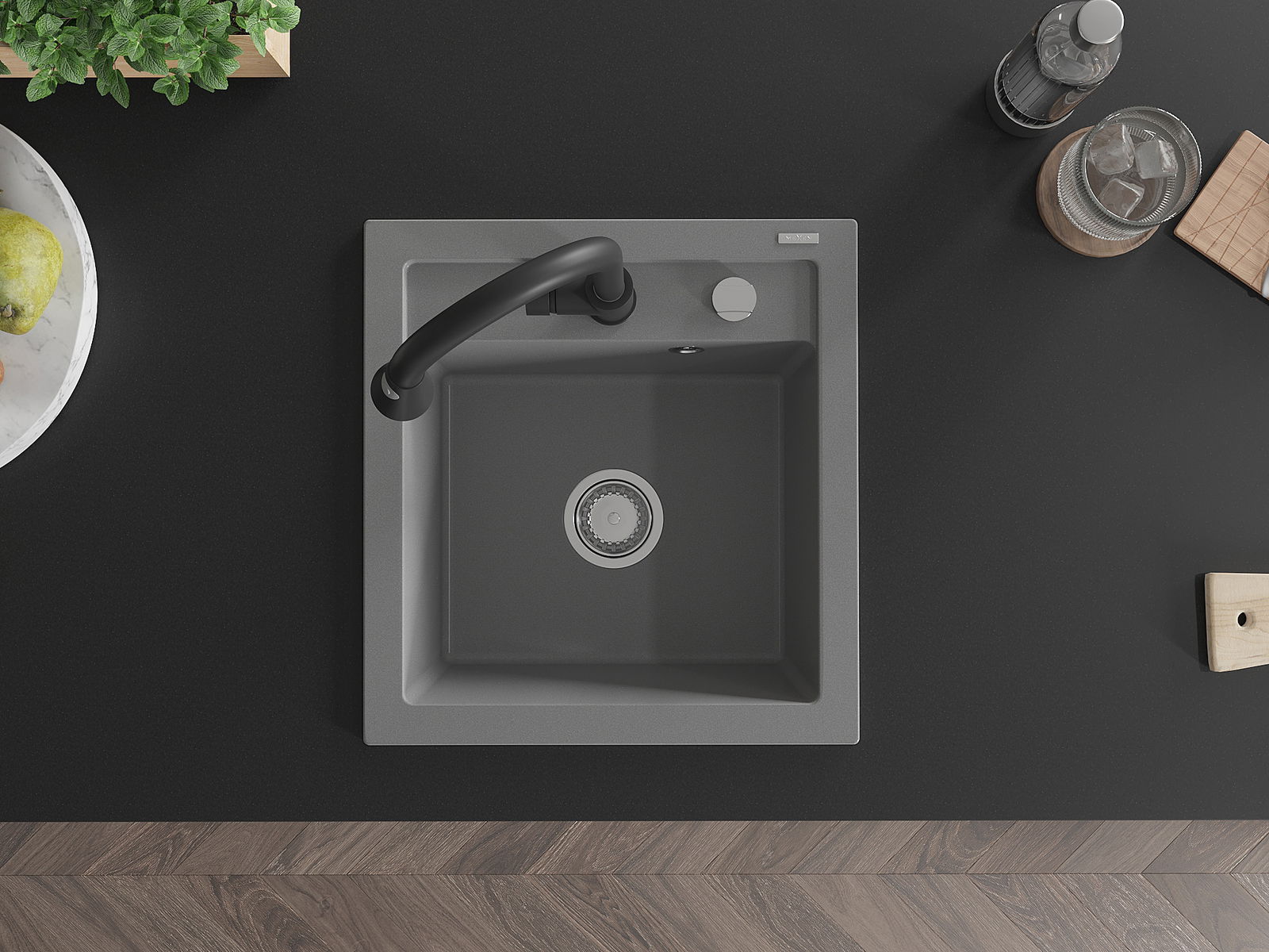 Mexen Vito chiuvetă din granit cu 1 compartiment și baterie de bucătărie Elia, gri - 6503-71-670101-70