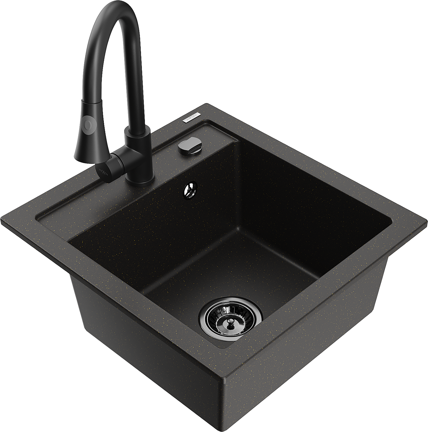 Mexen Vito chiuvetă de granit cu 1 compartiment cu baterie de bucătărie Elia, negru/auriu metalic - 6503-75-670101-70-B