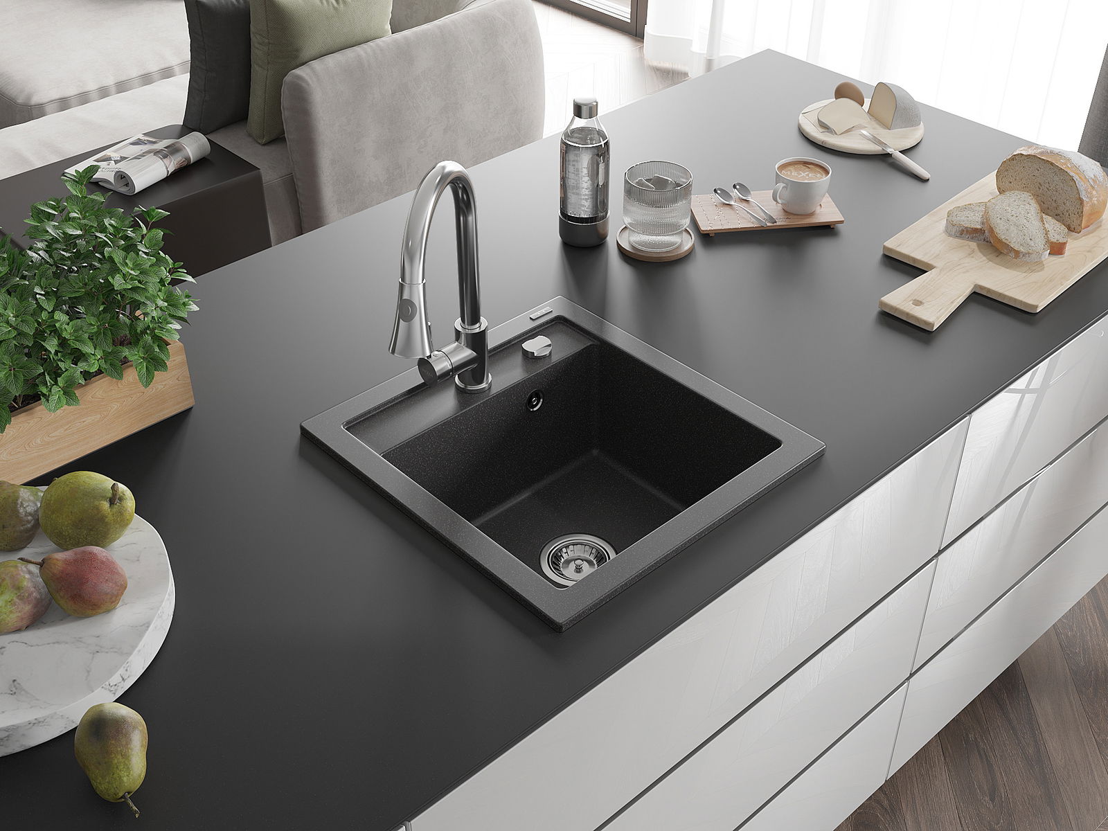 Chiuveta a fost realizată din granit de înaltă calitate. Reprezintă un complement elegant și, mai presus de toate, practic pentru orice bucătărie, indiferent de stilul său. Calitatea înaltă și durabilitatea granitului asigură o utilizare de lungă durată.