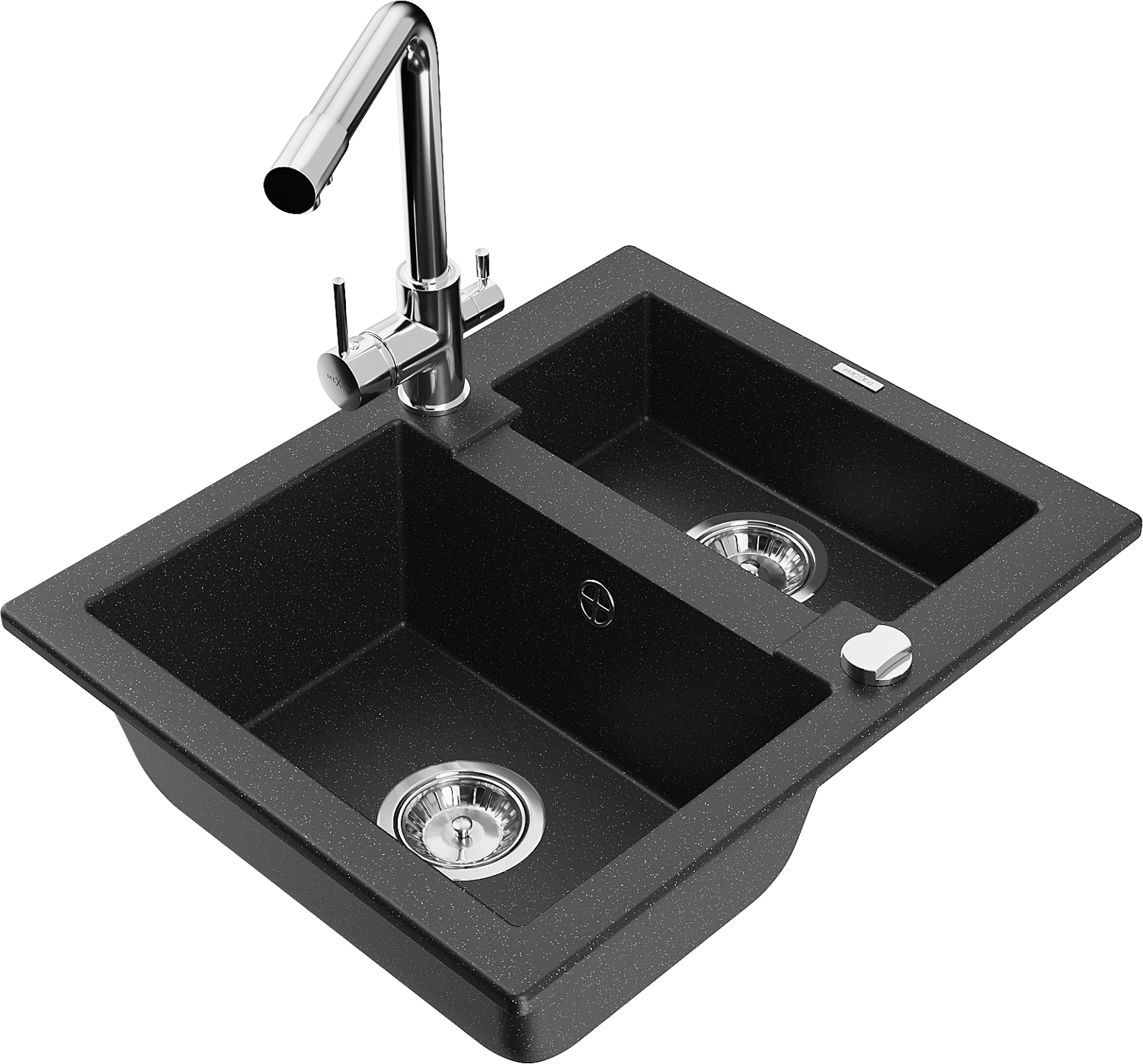 Mexen Carlos chiuvetă de granit cu 1,5 camere cu robinet de bucătărie Duero, negru/argintiu metalic - 6518-73-671600-00