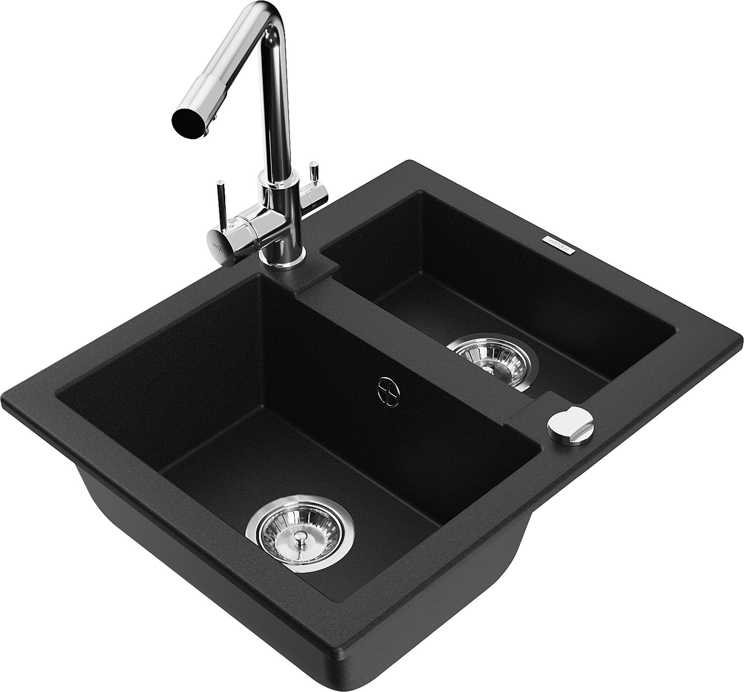 Mexen Carlos chiuvetă de granit cu 1,5 compartimente și baterie de bucătărie Duero, negru - 6518-77-671600-00