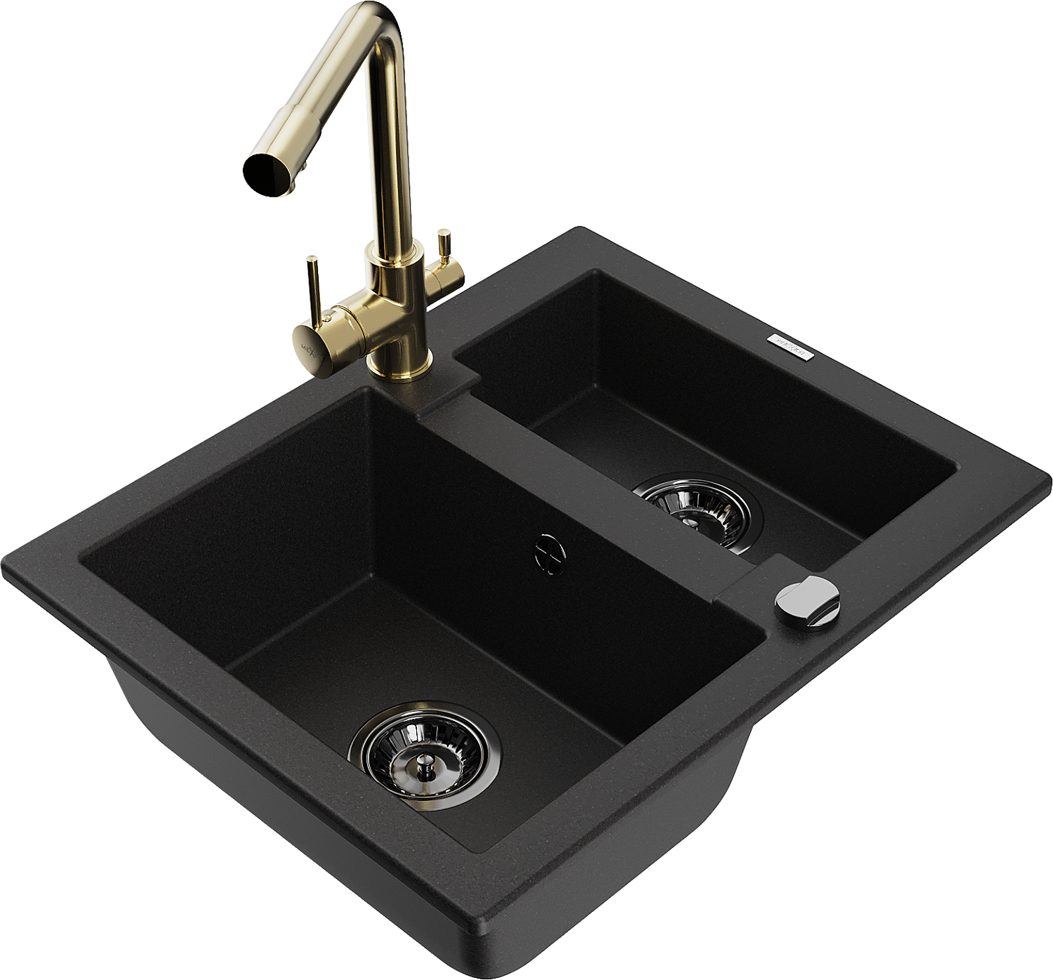 Mexen Carlos chiuvetă din granit cu 1,5 camere cu baterie de bucătărie Duero, negru - 6518-77-671600-50-B