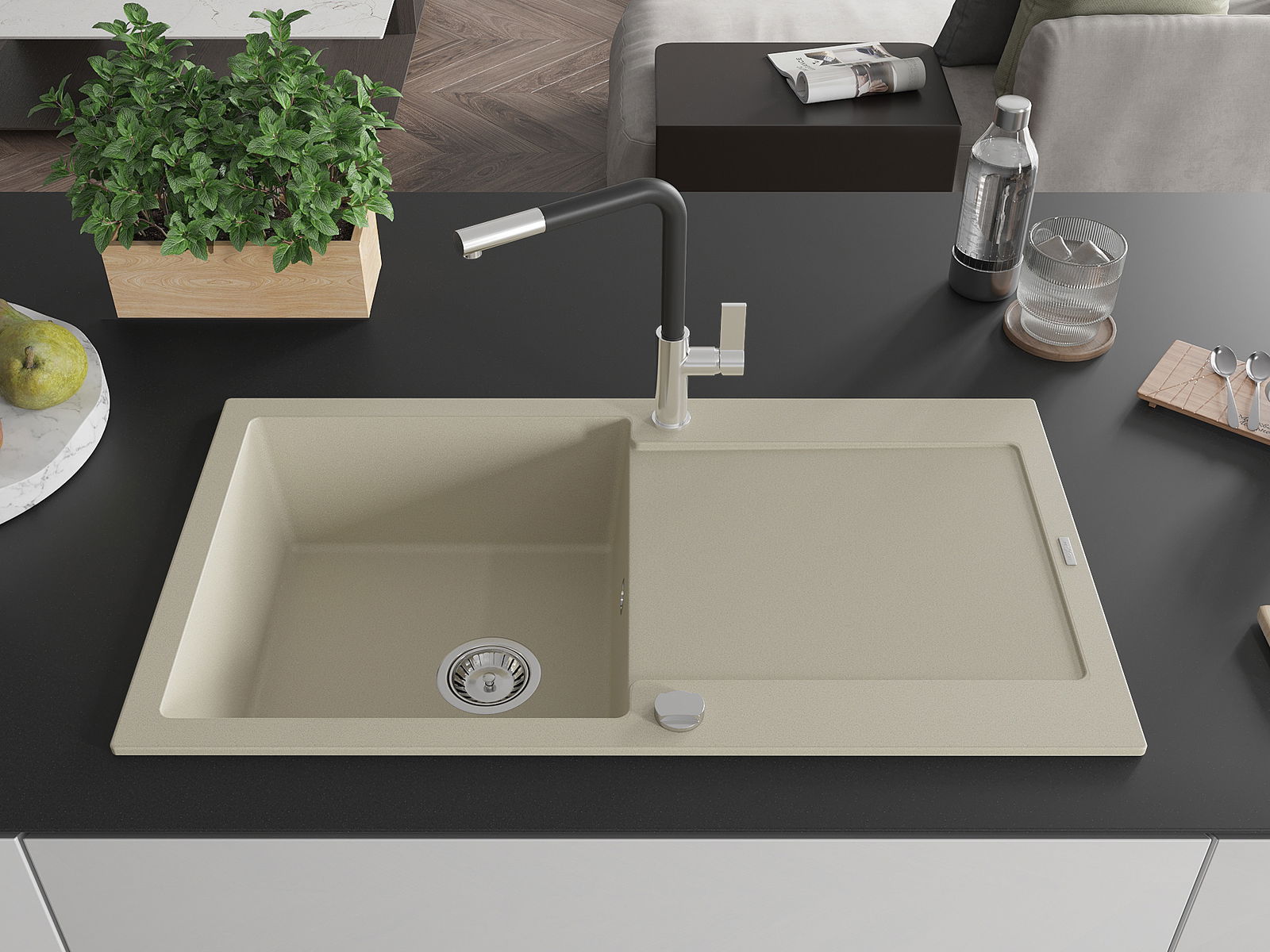 Chiuveta este confecționată din granit de înaltă calitate. Este un complement elegant și, mai ales, practic pentru fiecare bucătărie, indiferent de stilul său. Durabilitatea de înaltă calitate și granit asigură mulți ani de utilizare.