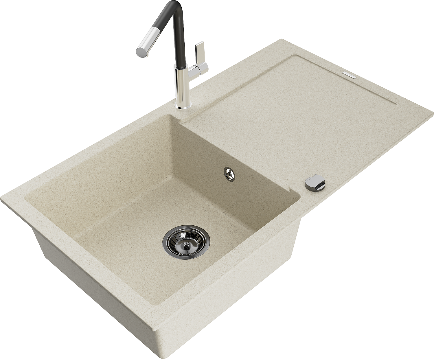 Mexen Leo chiuvetă de granit cu o cuvă și picurător și baterie de bucătărie Flora, bej - 6501-69-670401-07-B