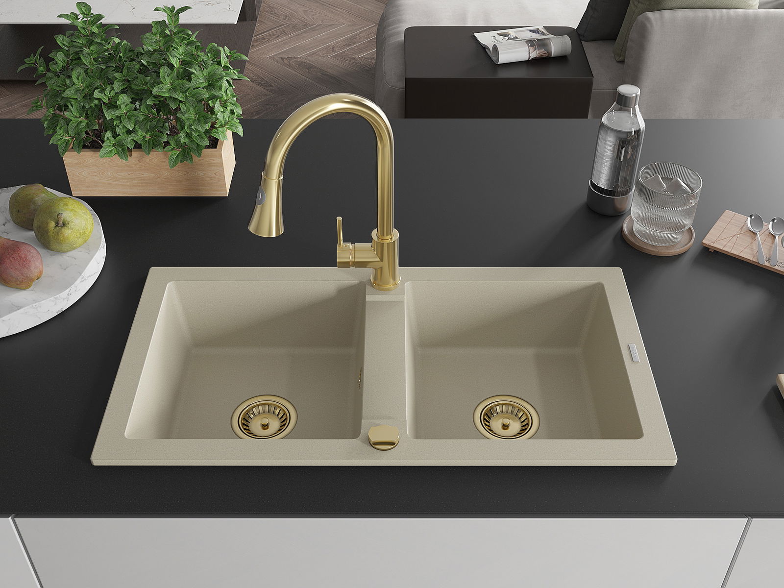 Suprafața chiuvetei este rezistentă la pete și decolorarea, datorită căreia este ușor de curățat și își păstrează culoarea mult timp. Estetică și practic completarea fiecărei bucătării.