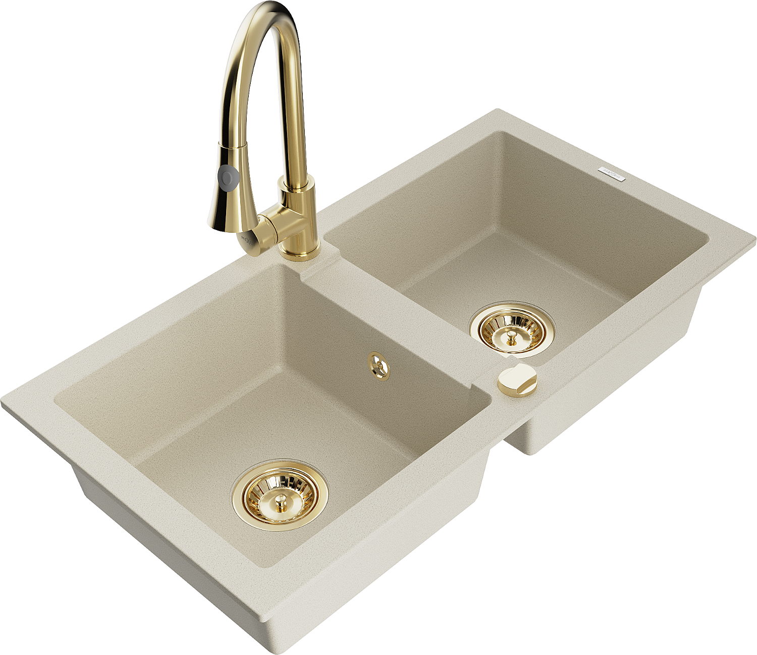 Mexen Mario chiuvetă din granit cu 2 compartimente cu baterie de bucătărie Elia, bej - 6504-69-670101-50