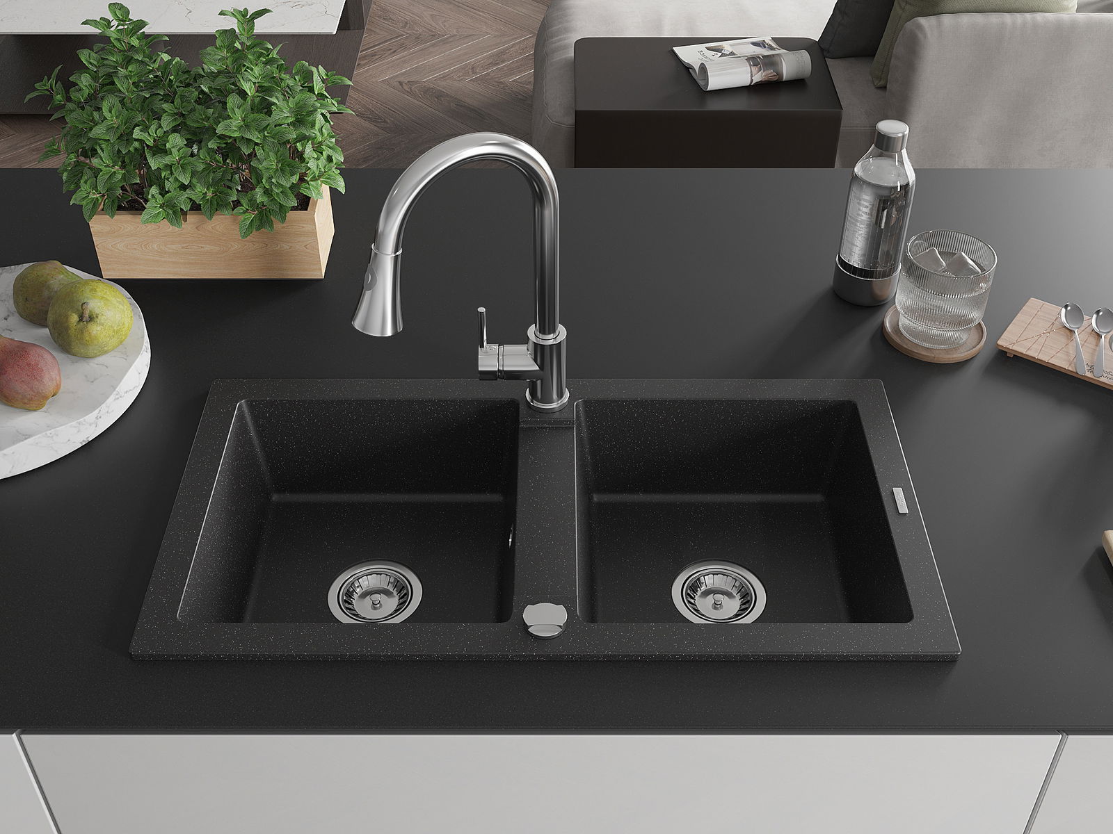 Suprafața chiuvetei este rezistentă la pete și decolorare, ceea ce o face ușor de întreținut și își păstrează culoarea pentru o perioadă lungă de utilizare. Un complet estetic și practic pentru orice bucătărie.