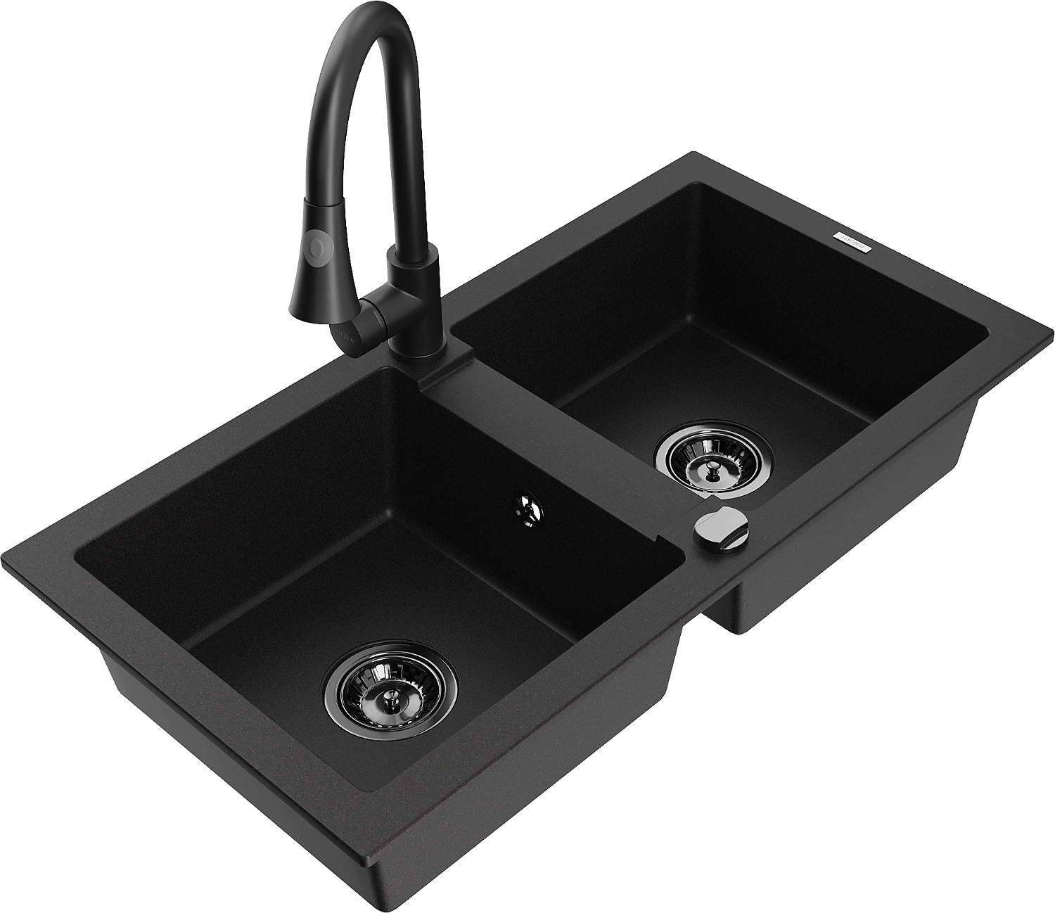 Mexen Mario chiuvetă granit 2 cuve cu baterie bucătărie Elia, negru - 6504-77-670101-70-B