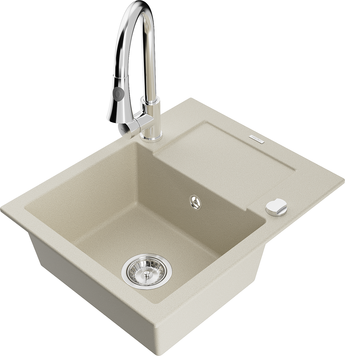 Mexen Enzo chiuvetă din granit cu 1 compartiment cu scurgător și baterie de bucătărie Elia, bej - 6506-69-670101-00