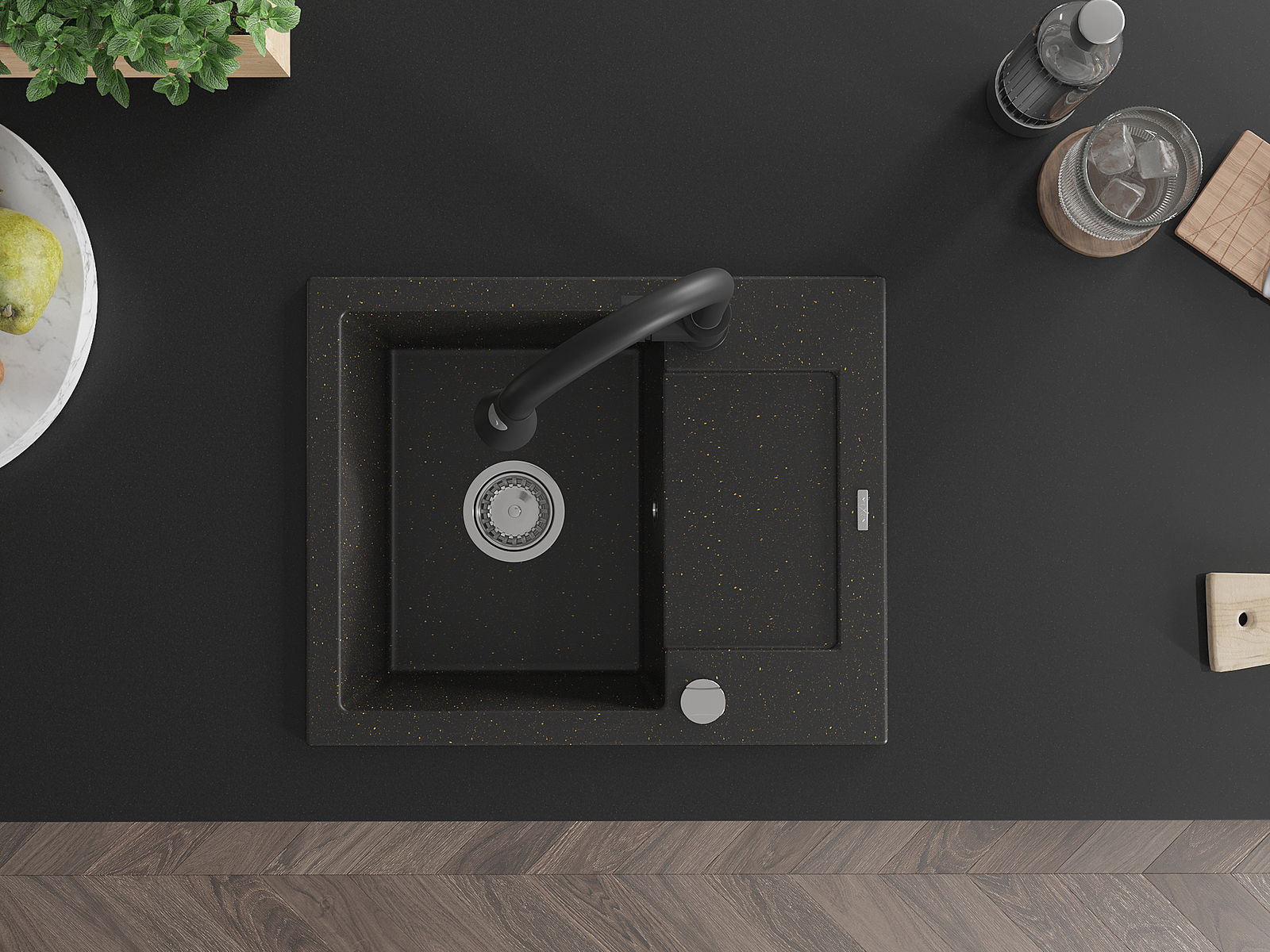 Mexen Enzo chiuvetă de bucătărie din granit cu 1 compartiment, cu scurgător și baterie de bucătărie Elia, negru/ofertă