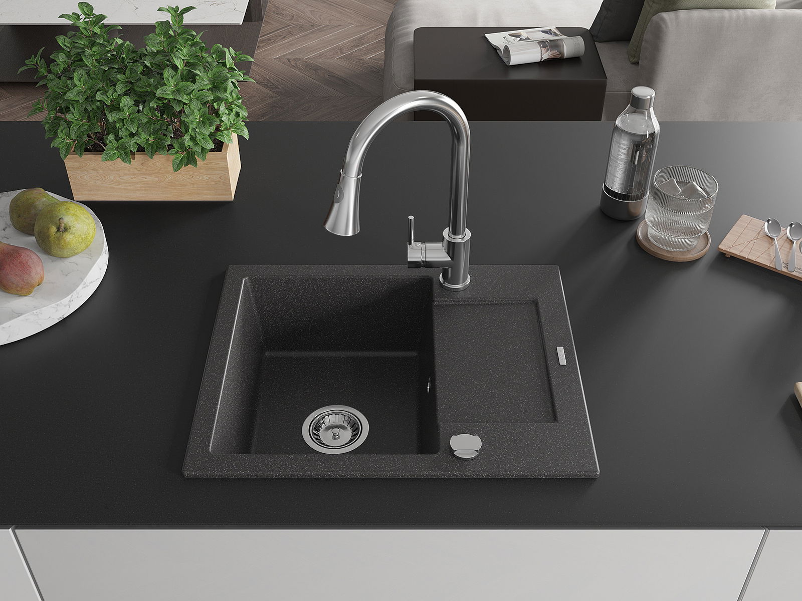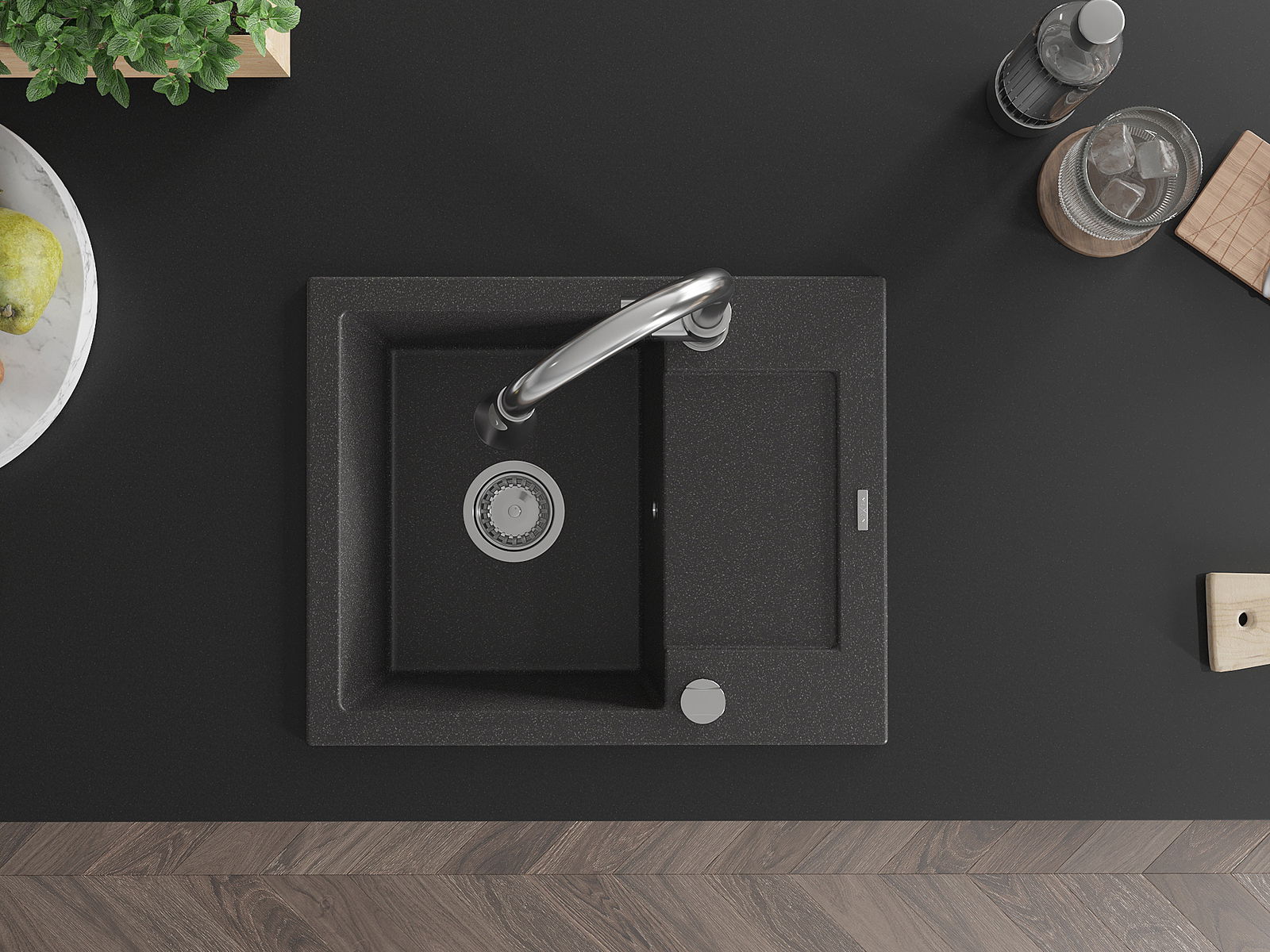 Suprafața chiuvetei este rezistentă la pete și decolorarea, datorită căreia este ușor de curățat și își păstrează culoarea mult timp. Estetică și practic completarea fiecărei bucătării.