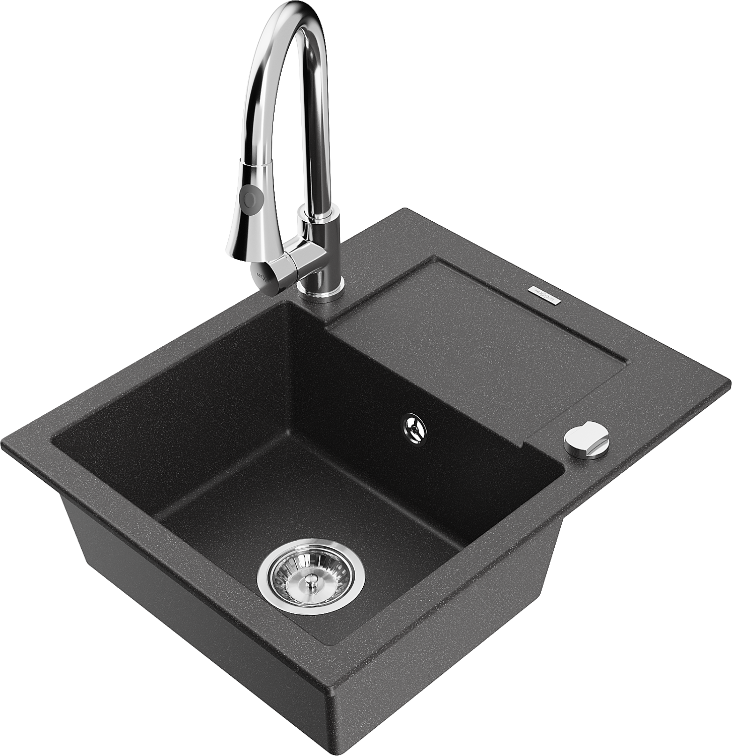 Mexen Enzo chiuvetă de granit cu 1 cuvă și picurător și baterie de bucătărie Elia, negru cu pete - 6506-76-670101-00