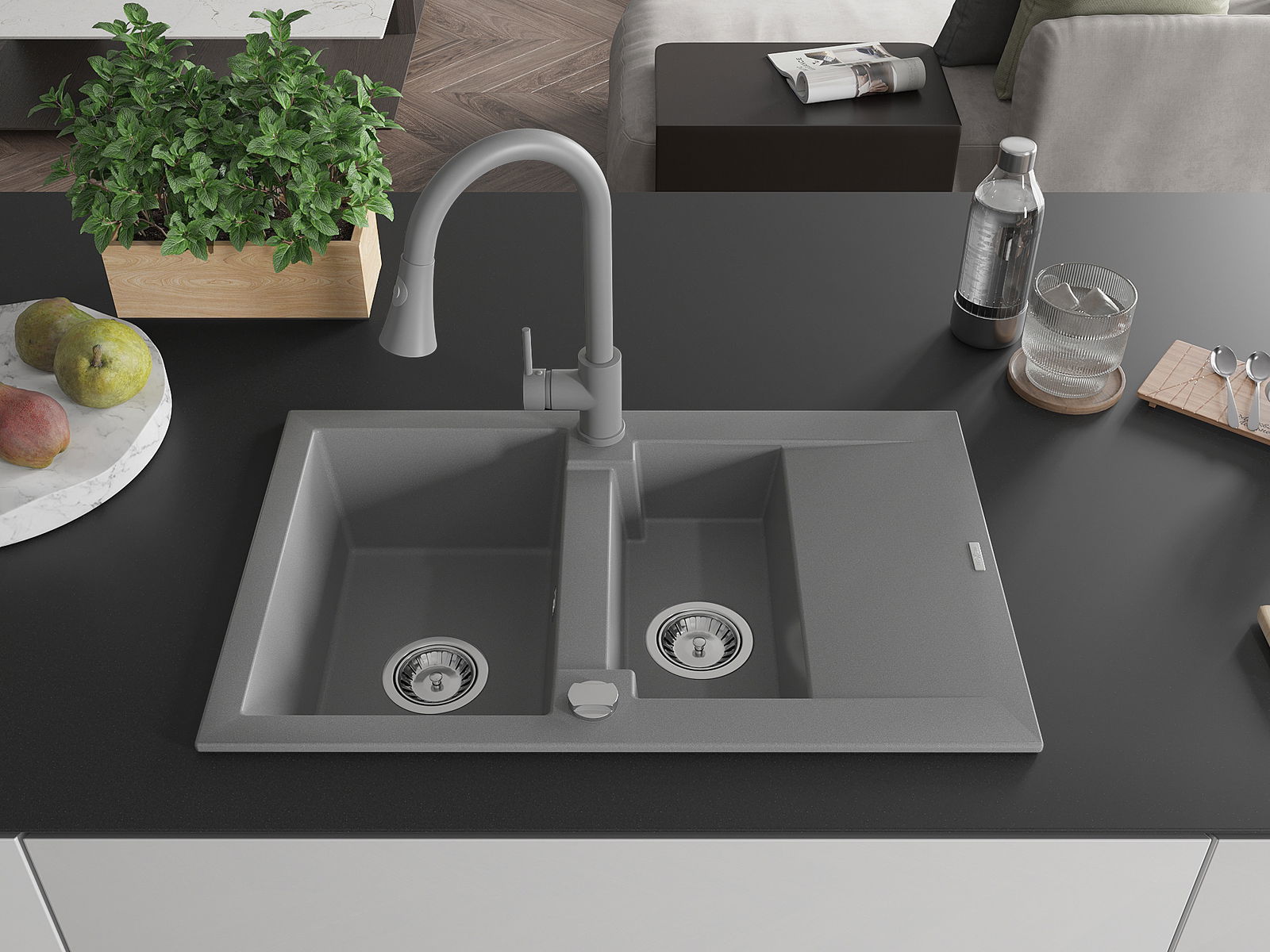 Chiuveta a fost realizată din granit de înaltă calitate. Reprezintă un complement elegant și, mai presus de toate, practic pentru orice bucătărie, indiferent de stilul său. Calitatea înaltă și durabilitatea granitului asigură o utilizare de lungă durată.