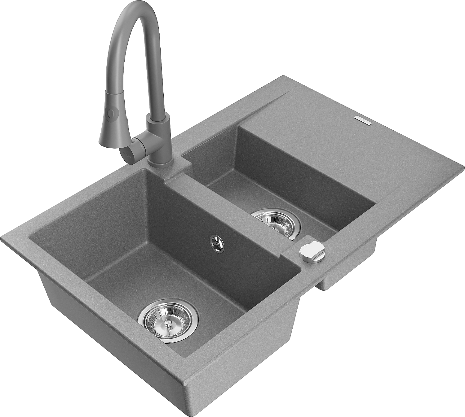 Mexen Gaspar chiuvetă din granit cu 1,5 compartimente cu scurgător și baterie de bucătărie Elia, gri - 6507-71-670101-71