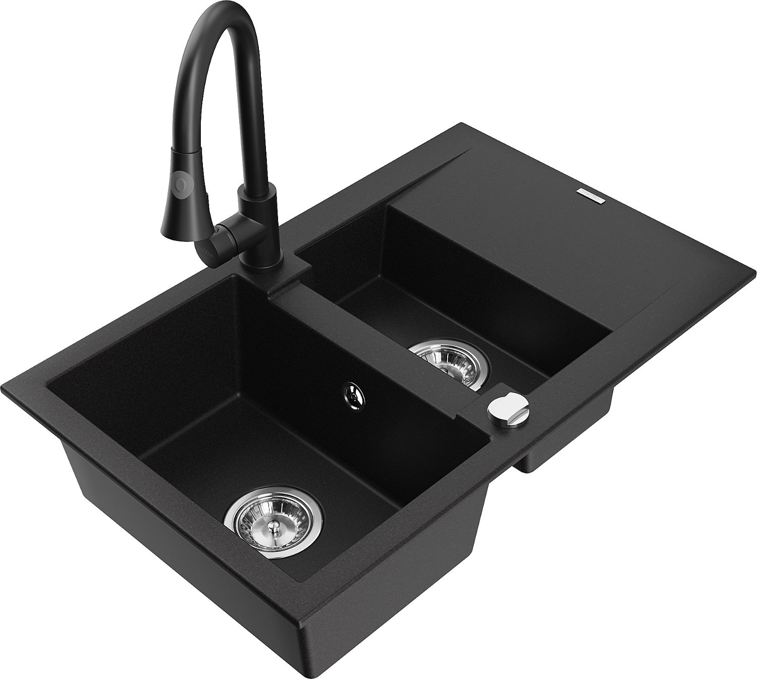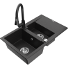 Mexen Gaspar chiuvetă granitică 1,5-cupe cu picurător și baterie de bucătărie Elia, negru - 6507-77-670101-70