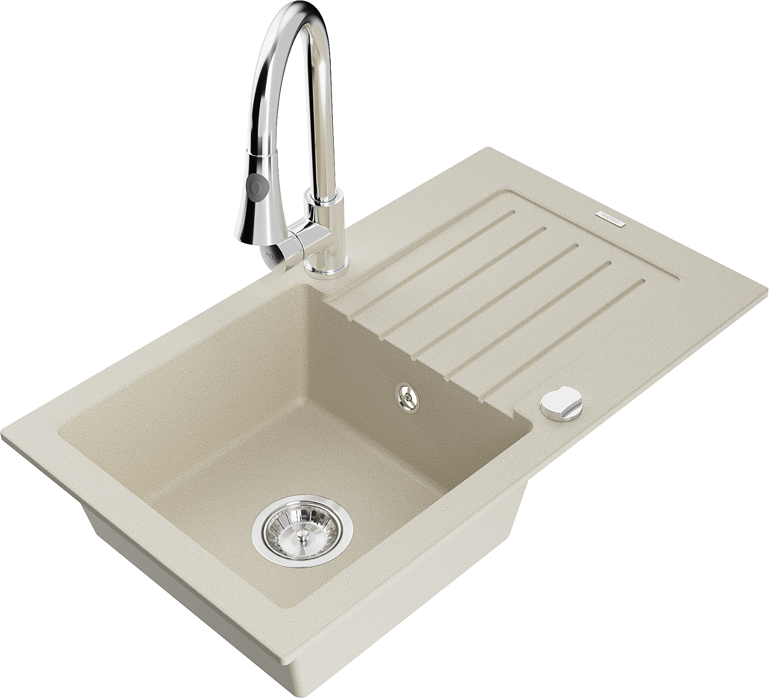 Mexen Pablo chiuvetă de bucătărie granit 1-cameră cu scurgător și baterie de bucătărie Elia, bej - 6510-69-670101-00