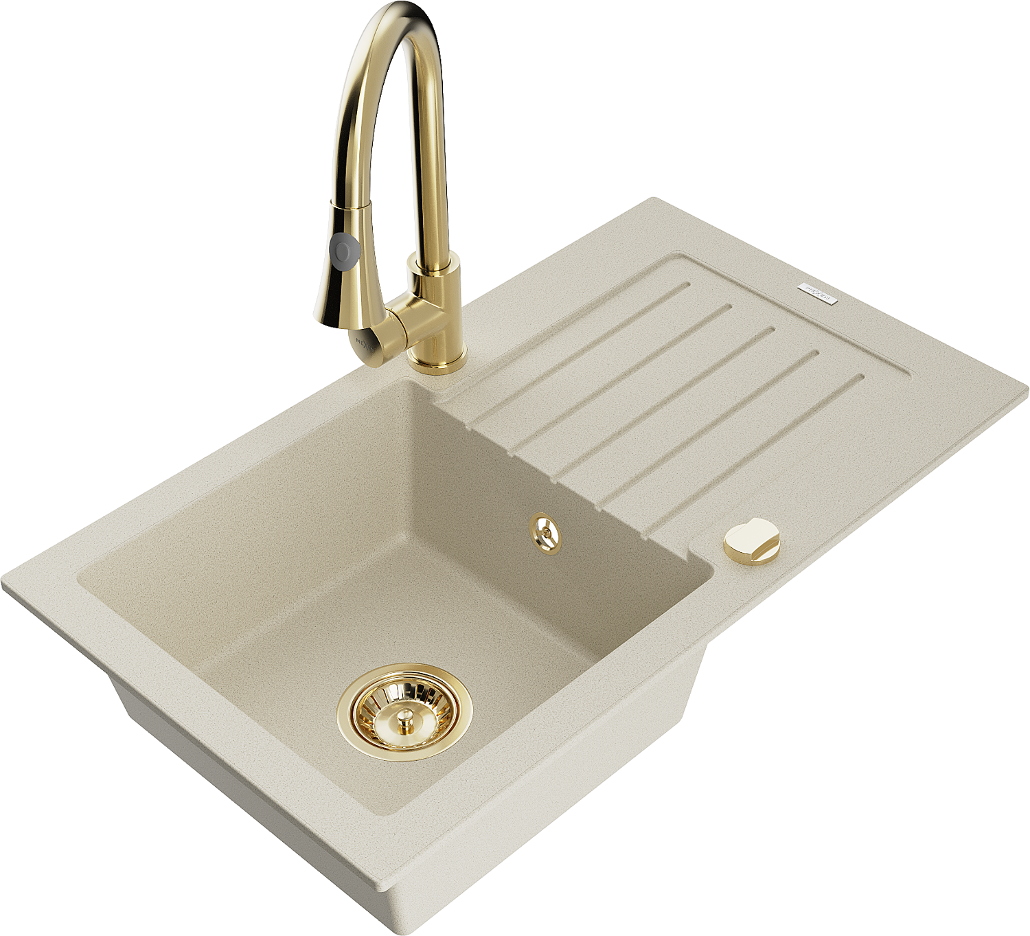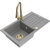Mexen Pablo chiuvetă de granit cu o singură cuvă cu scurgător și robinet de bucătărie Elia, bej - 6510-69-670101-50