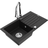 Mexen Pablo chiuvetă de granit cu o cuvă și scurgător, cu baterie de bucătărie Elia, negru/metal argintiu