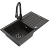 Mexen Pablo chiuvetă de granit cu 1 compartiment cu scurgător și baterie de bucătărie Elia, negru/metalic argintiu - 6510-73-67?