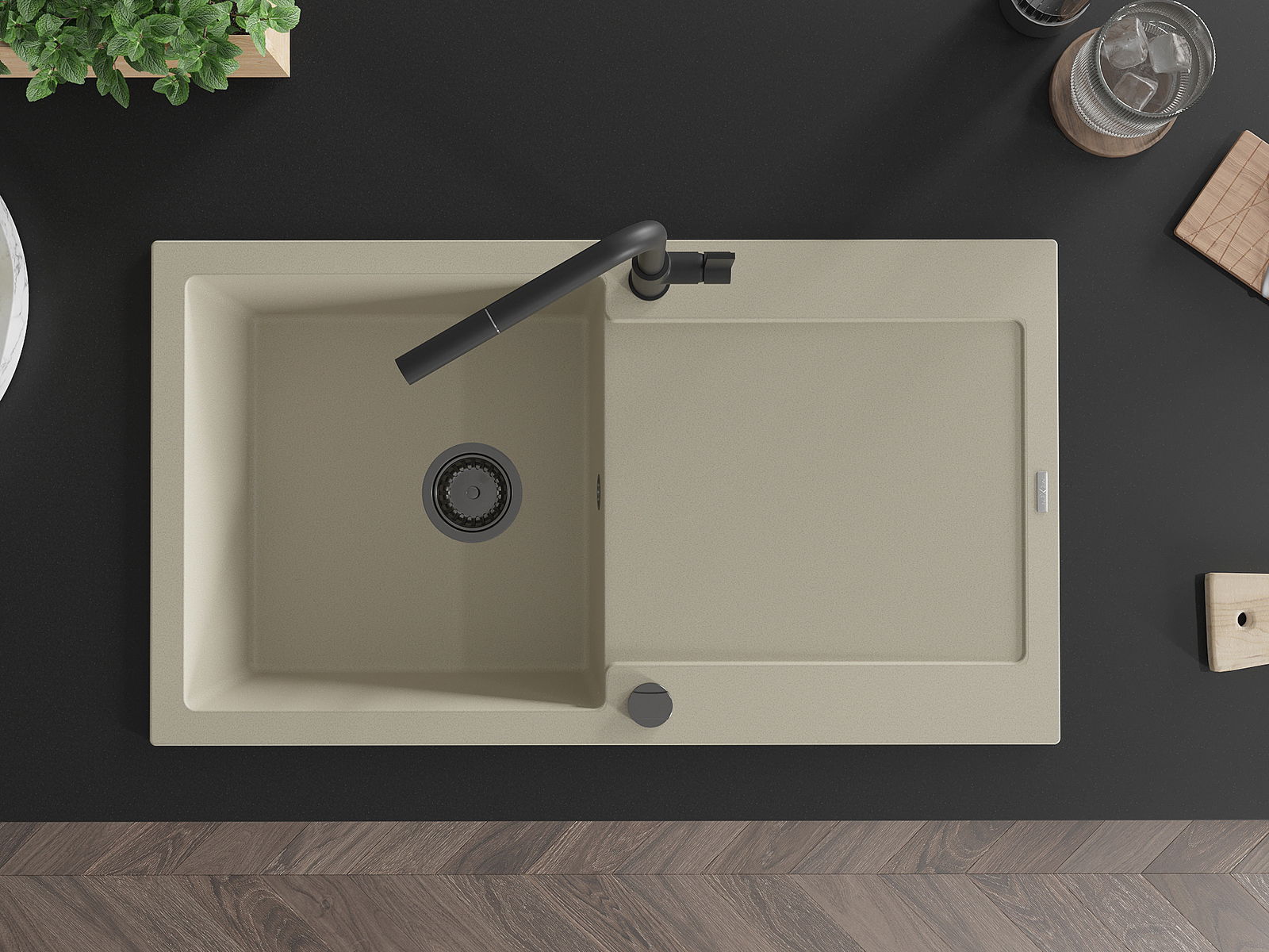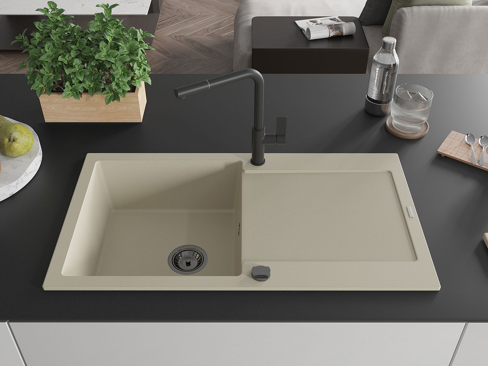 Suprafața chiuvetei este rezistentă la pete și decolorarea, datorită căreia este ușor de curățat și își păstrează culoarea mult timp. Estetică și practic completarea fiecărei bucătării.