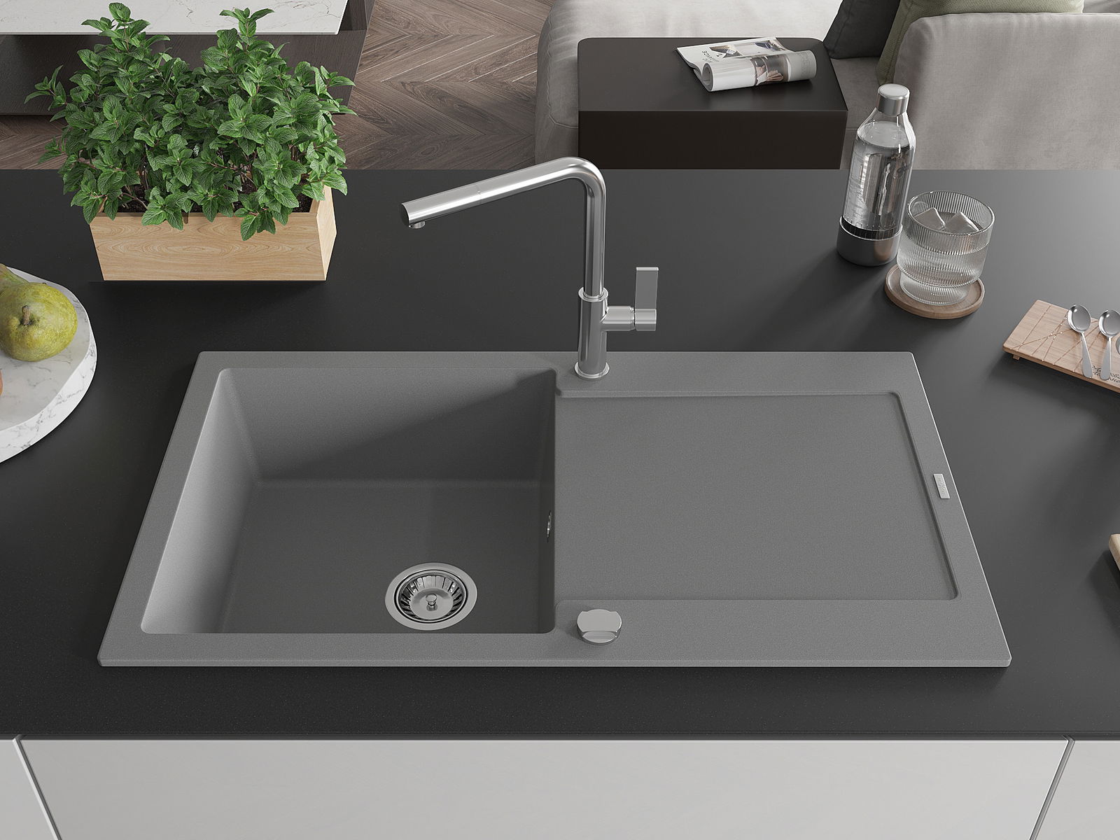 Suprafața chiuvetei este rezistentă la pete și decolorarea, datorită căreia este ușor de curățat și își păstrează culoarea mult timp. Estetică și practic completarea fiecărei bucătării.