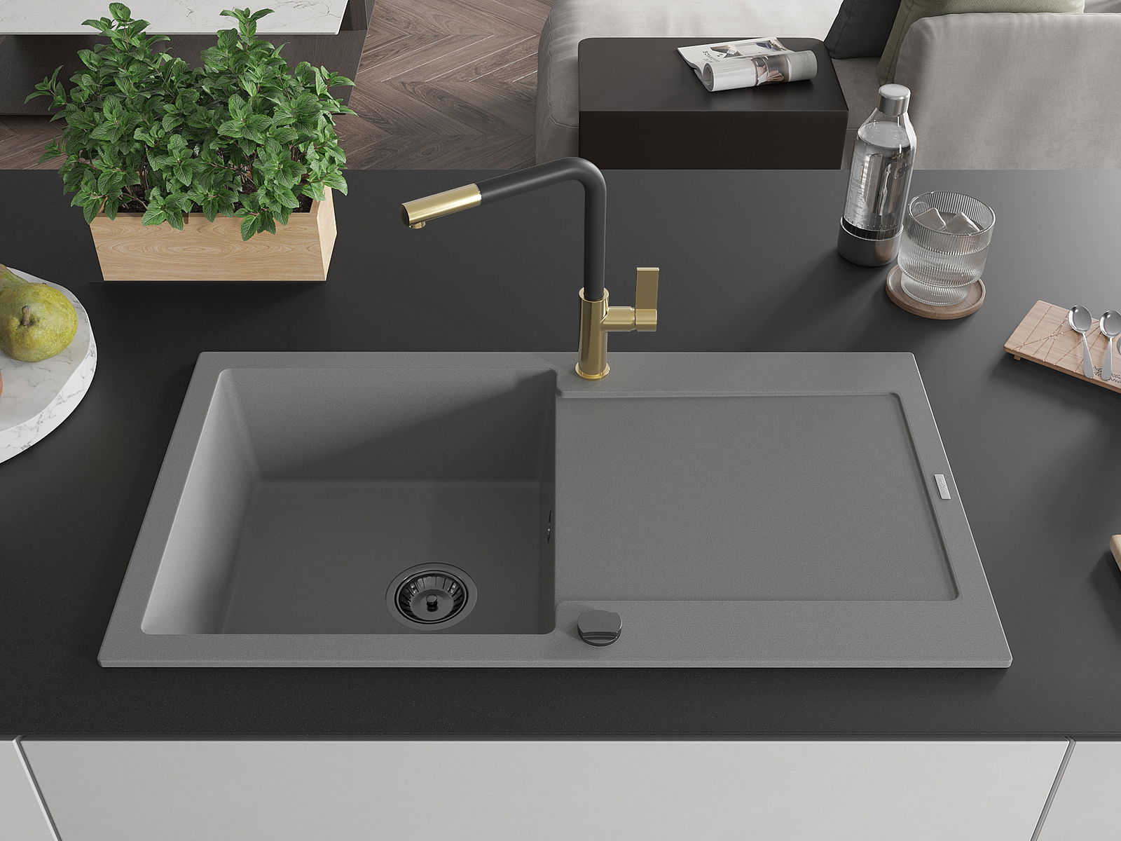 Chiuveta este confecționată din granit de înaltă calitate. Este un complement elegant și, mai ales, practic pentru fiecare bucătărie, indiferent de stilul său. Durabilitatea de înaltă calitate și granit asigură mulți ani de utilizare.