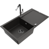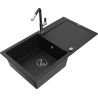 Mexen Leo chiuvetă de bucătărie din granit cu 1 compartiment, cu picurător și baterie de bucătărie Flora, negru/argintiu metali?