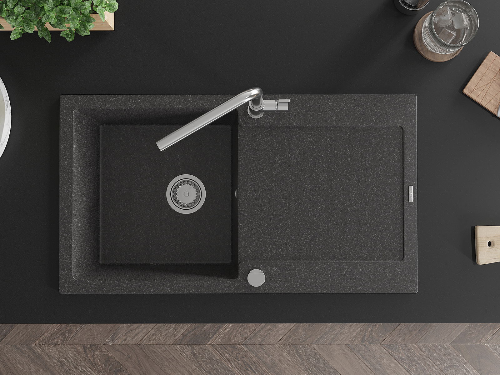 Chiuveta este confecționată din granit de înaltă calitate. Este un complement elegant și, mai ales, practic pentru fiecare bucătărie, indiferent de stilul său. Durabilitatea de înaltă calitate și granit asigură mulți ani de utilizare.