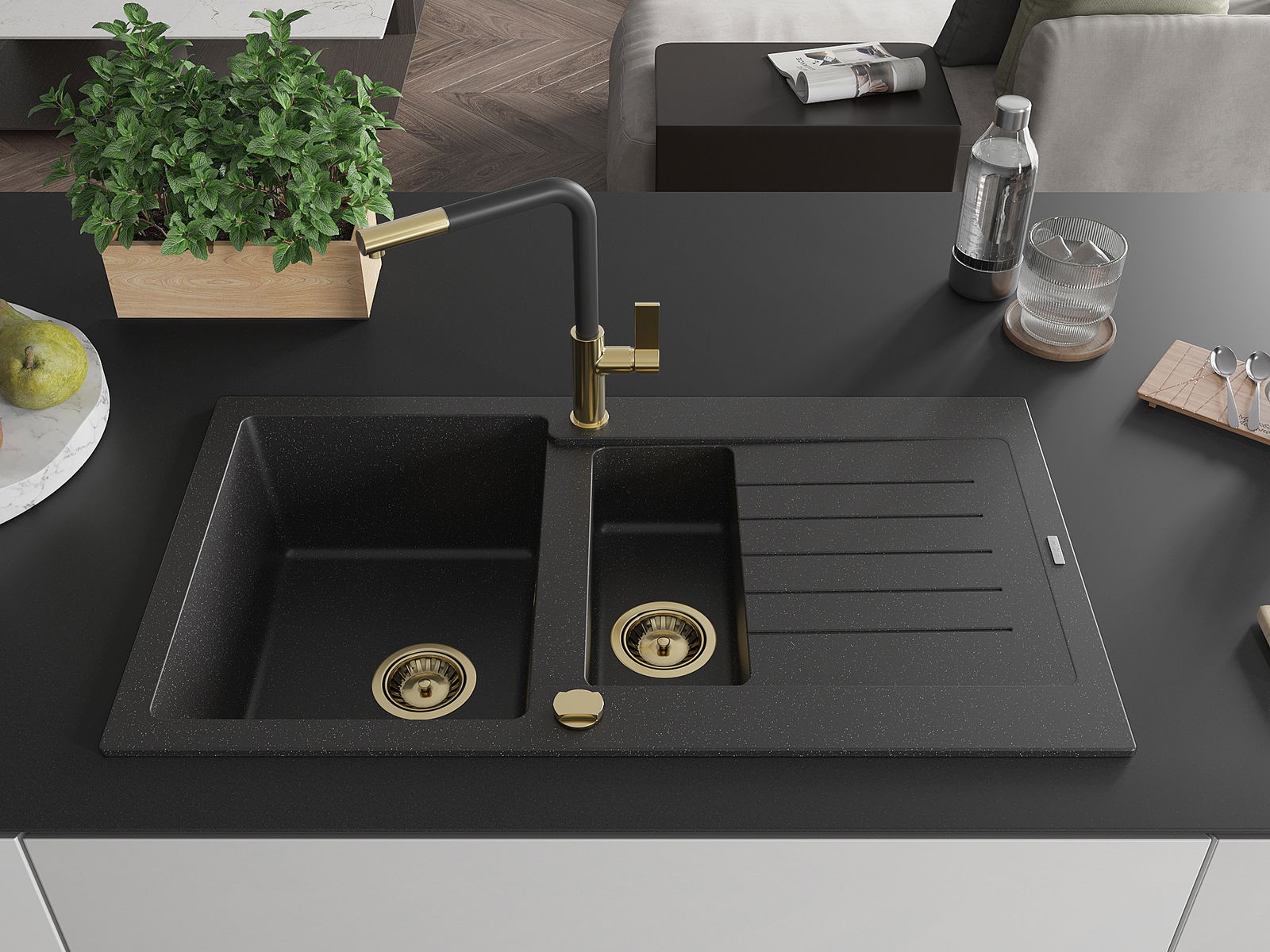 Chiuveta a fost realizată din granit de înaltă calitate. Reprezintă un complement elegant și, mai presus de toate, practic pentru orice bucătărie, indiferent de stilul acesteia. Calitatea înaltă și durabilitatea granitului asigură o utilizare de lungă durată.