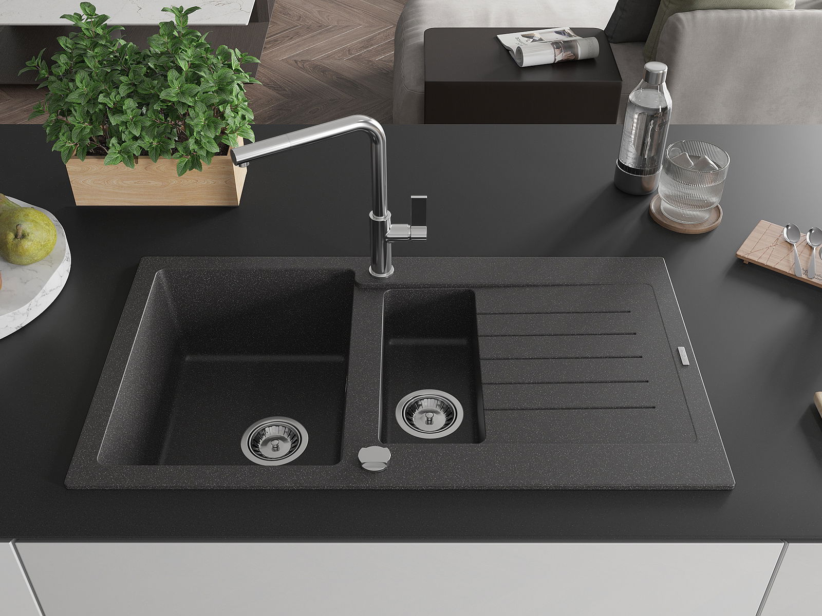 Suprafața chiuvetei este rezistentă la pete și decolorarea, datorită căreia este ușor de curățat și își păstrează culoarea mult timp. Estetică și practic completarea fiecărei bucătării.