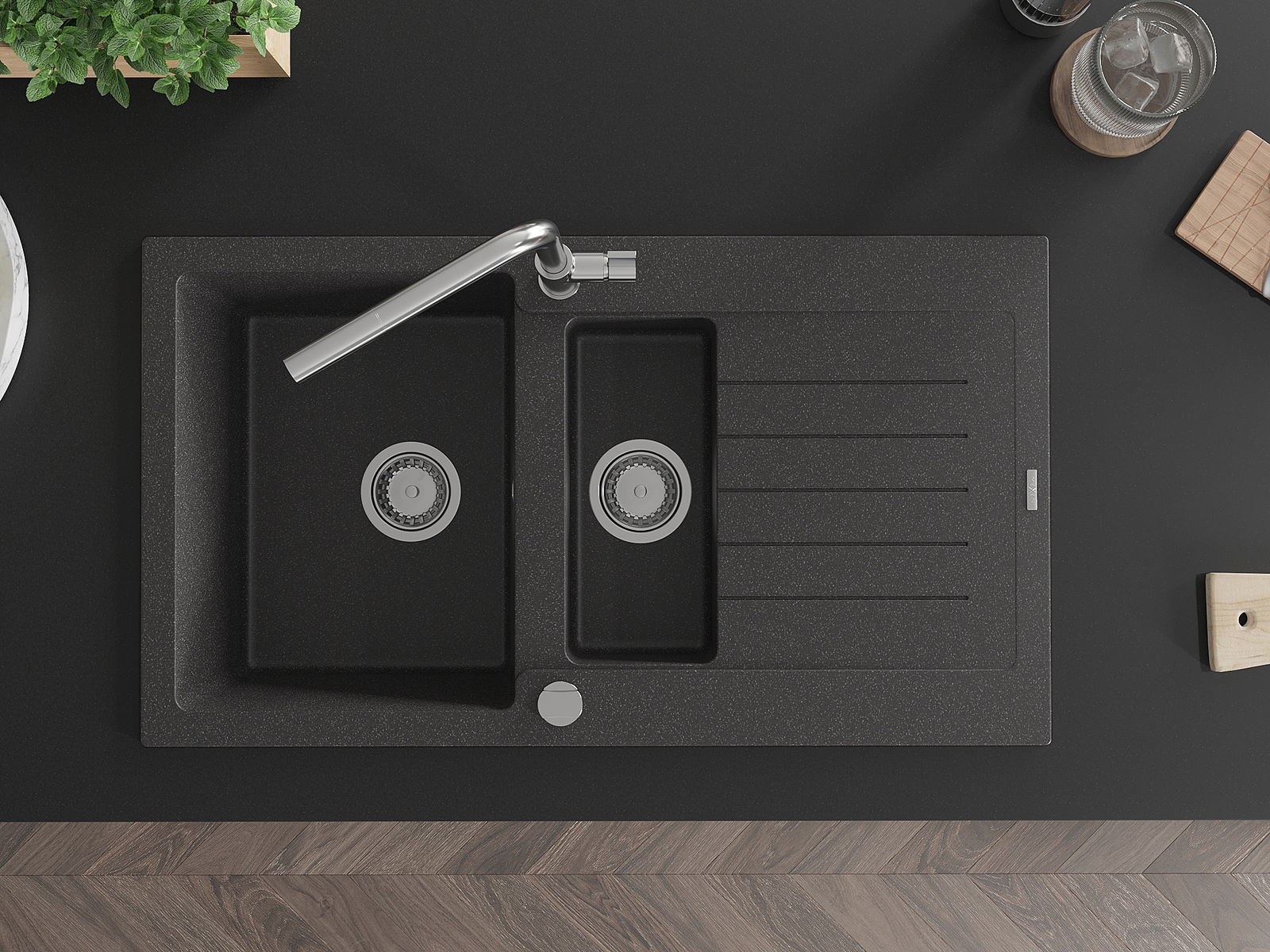 Datorită sistemului de montare universală, chiuveta este reversibilă, iar scurgerea poate fi montată pe blat la stânga sau la dreapta. În acest fel, puteți ajusta cu ușurință pagina la nevoile și condițiile dvs.