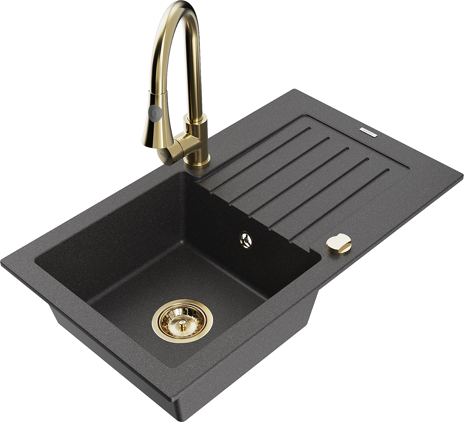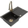 Mexen Pablo chiuvetă din granit cu 1 compartiment cu picurător și baterie de bucătărie Elia, negru pătat - 6510-76-670101-50