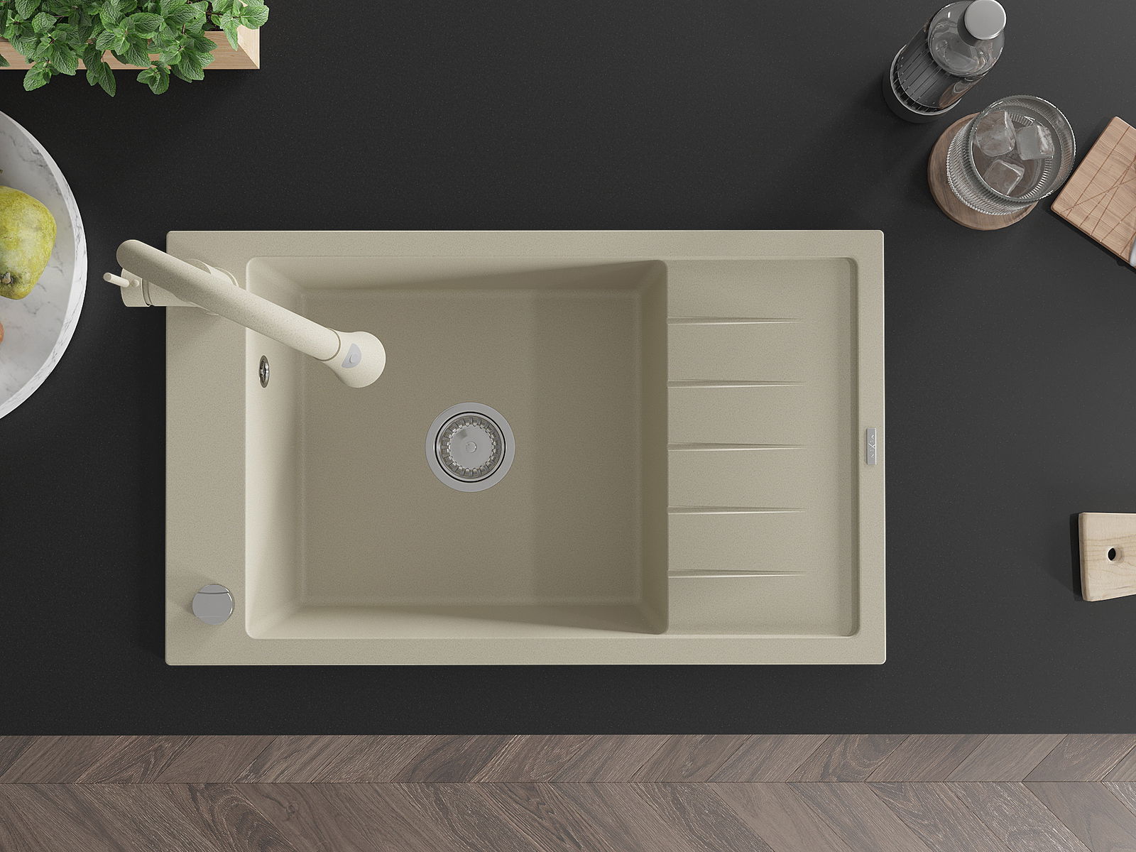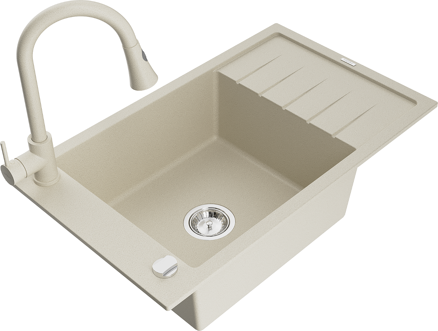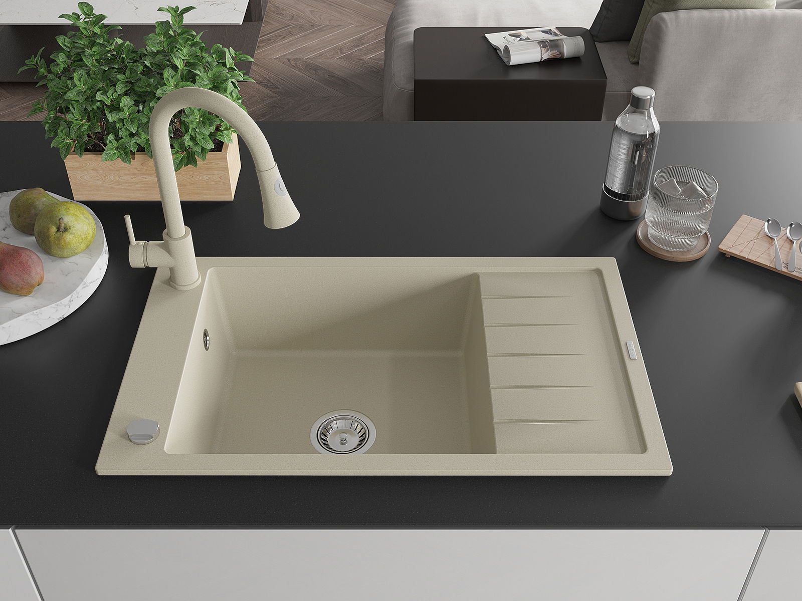 Mexen Elias chiuvetă de granit cu 1 compartiment cu scurgător și baterie de bucătărie Elia, bej - 6511-69-670101-69