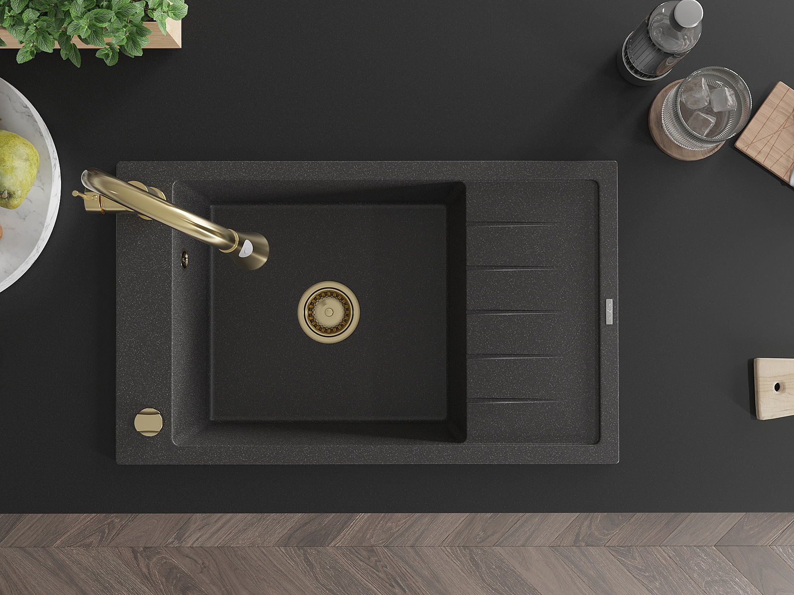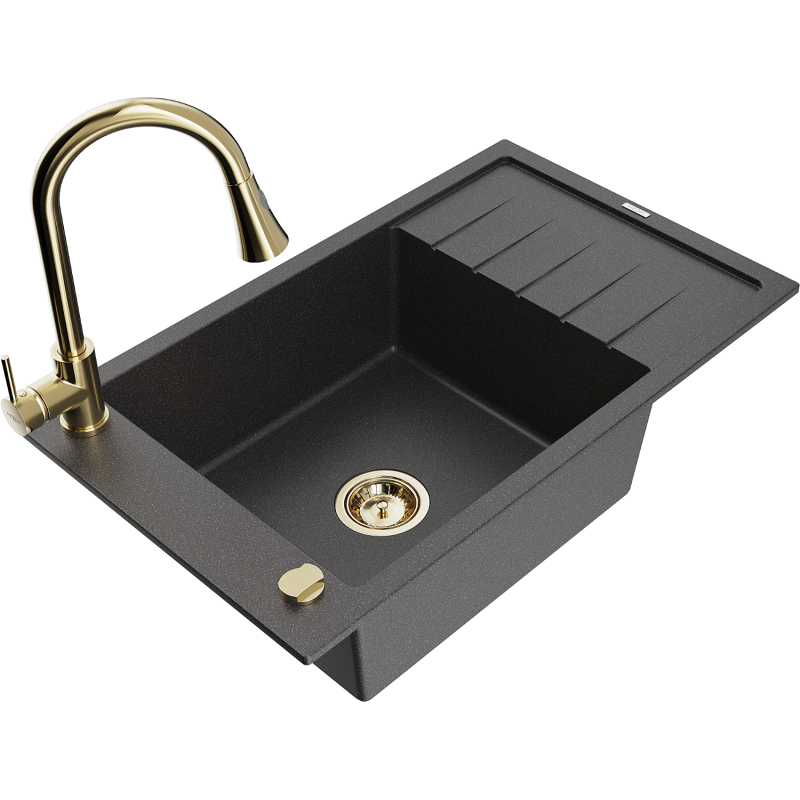Mexen Elias chiuvetă din granit cu 1 cuvă cu scurgător și baterie de bucătărie Elia, negru stropit - 6511-76-670101-50