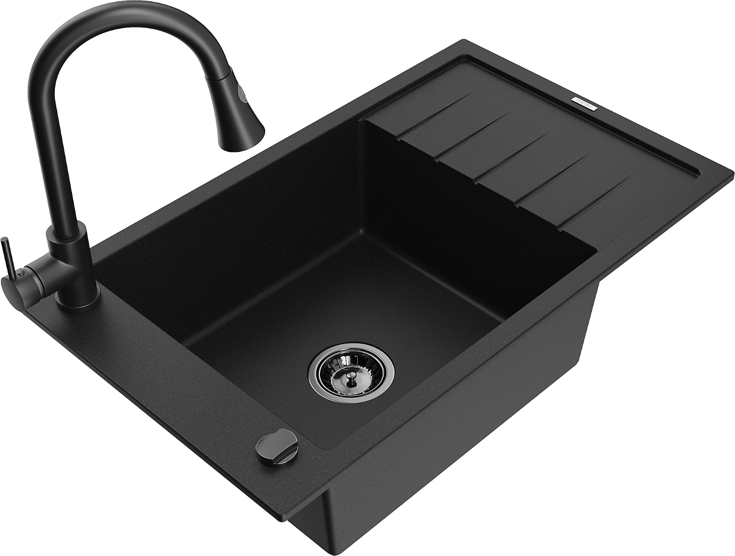 Mexen Elias chiuvetă de granit cu 1 cuvă și scurgător și baterie de bucătărie Elia, neagră - 6511-77-670101-70-B