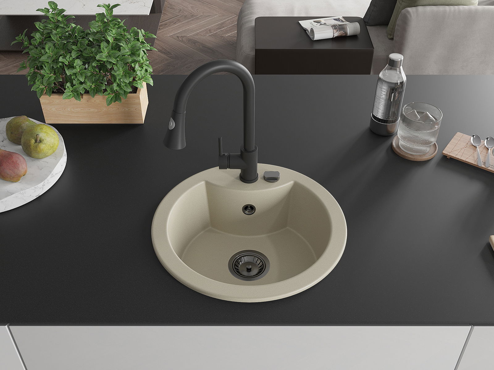 Chiuveta este confecționată din granit de înaltă calitate. Este un complement elegant și, mai ales, practic pentru fiecare bucătărie, indiferent de stilul său. Durabilitatea de înaltă calitate și granit asigură mulți ani de utilizare.