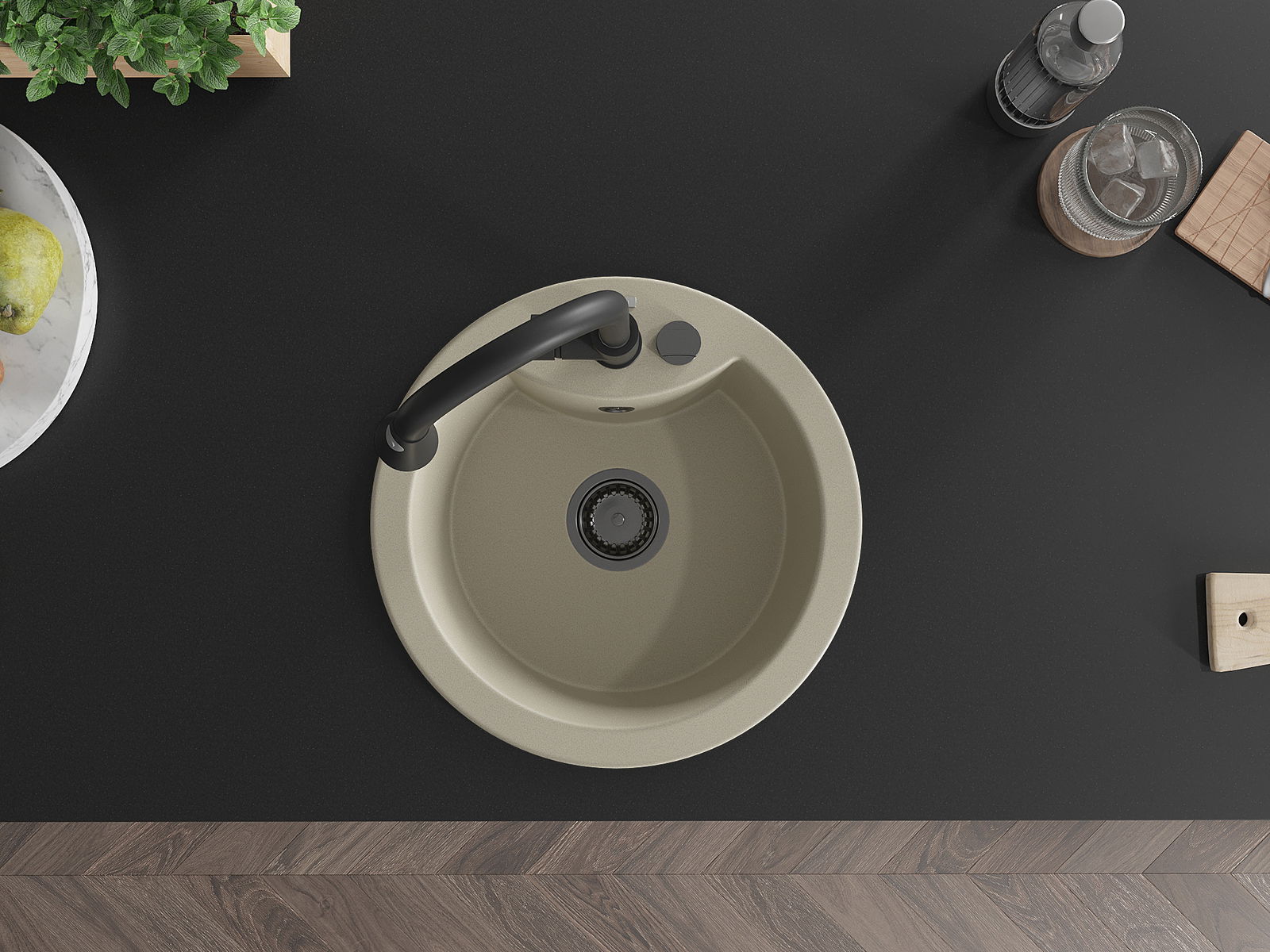 Suprafața chiuvetei este rezistentă la pete și decolorarea, datorită căreia este ușor de curățat și își păstrează culoarea mult timp. Estetică și practic completarea fiecărei bucătării.