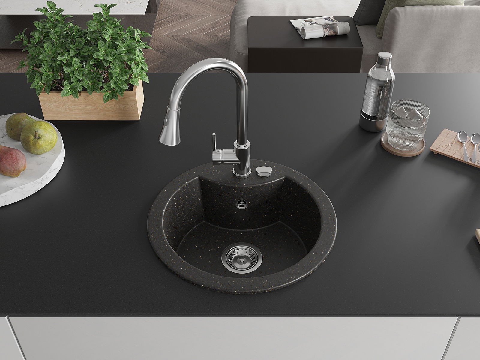 Chiuveta a fost realizată din granit de înaltă calitate. Reprezintă un complement elegant și, mai presus de toate, practic pentru orice bucătărie, indiferent de stilul acesteia. Calitatea înaltă și durabilitatea granitului asigură o utilizare de lungă durată.